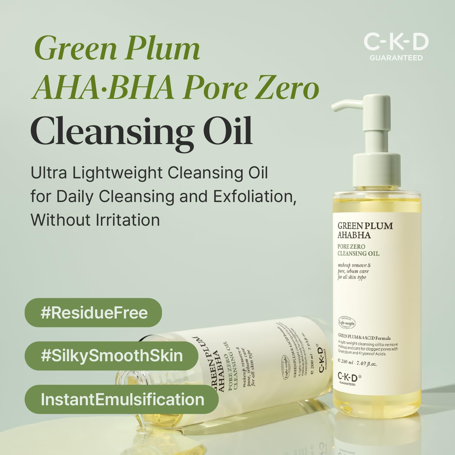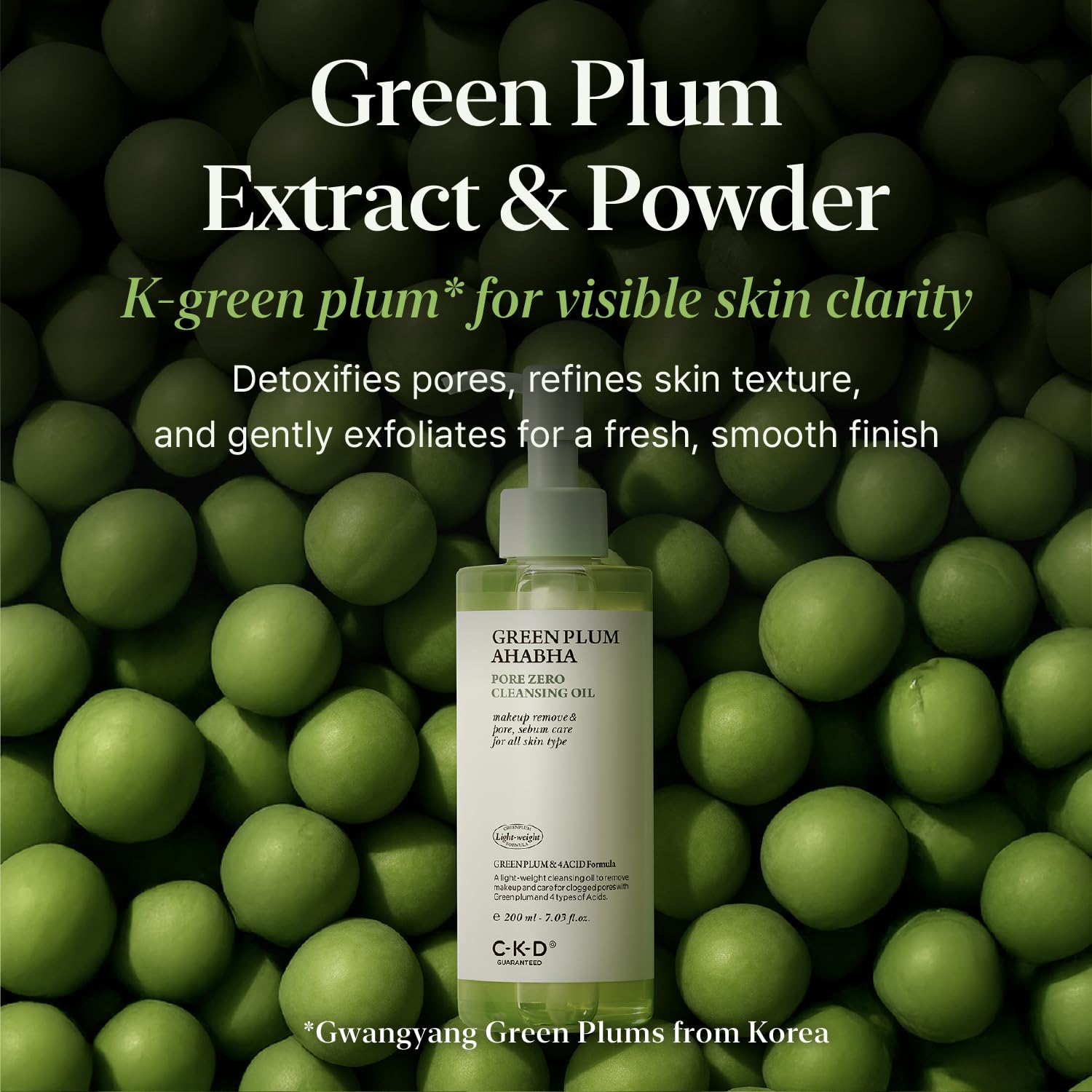 CKD Green Plum AHA·BHA Pore Zero Face Cleansing Oil -Gentle Korean Cleanser, Instant Makeup Removal, Sebum Control, Hydrating & Low-Irritation. No Oily Residue. 7.03 fl oz