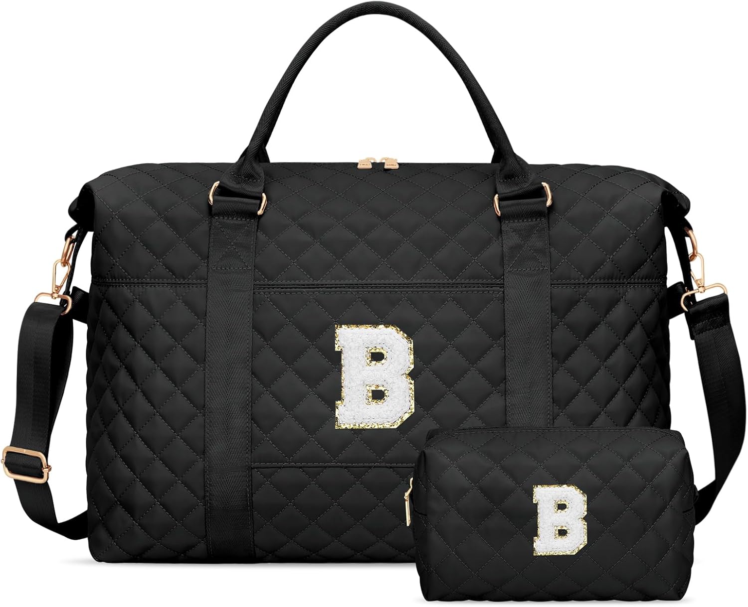 - Personalized Initial Weekend Bag: Our weekend bag features personalized initials, you can choose your initials or give them to others as gifts, which makes them feel warm. Includes a matching toiletry bag with the same letters for storing cosmetics and travel essentials