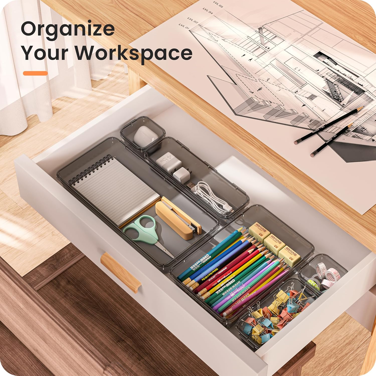 - 【One Set, Endless Uses】 ---- Perfect for any drawer in your home! These 28-piece drawer organizers offering practical solutions for every space. Their flexible design adapts to your needs, keeping drawers tidy, functional, and ready for versatile organization and storage. They offer smart storage solutions for every space. From lipsticks to forks, batteries to binder clips—there’s a place for everything.