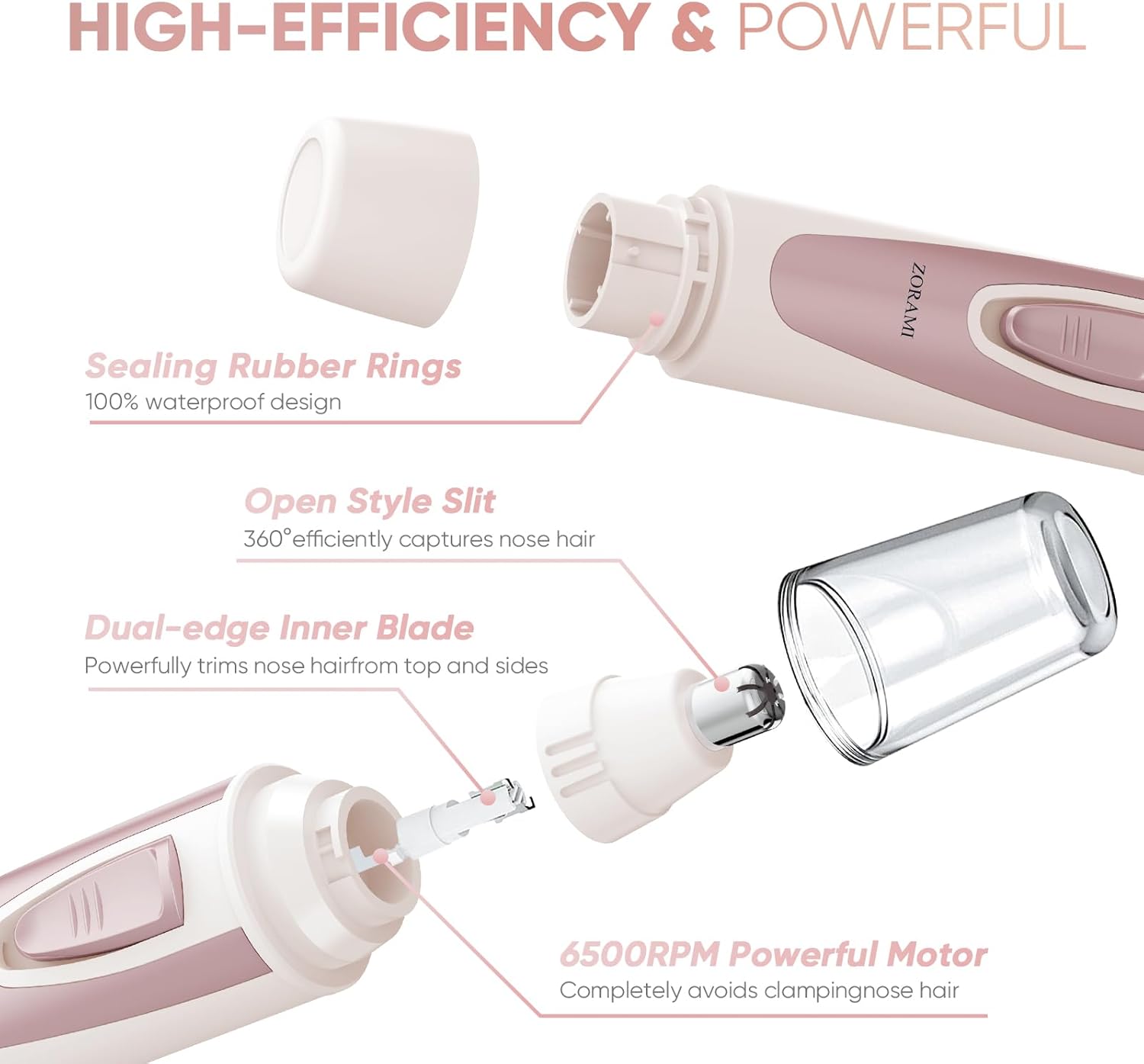 Ear and Nose Hair Trimmer Clipper - 2025 Professional Painless Eyebrow & Facial Hair Trimmer for Men Women, Battery-Operated Trimmer with IPX7 Waterproof, Dual Edge Blades for Easy Cleansing Rose Pink