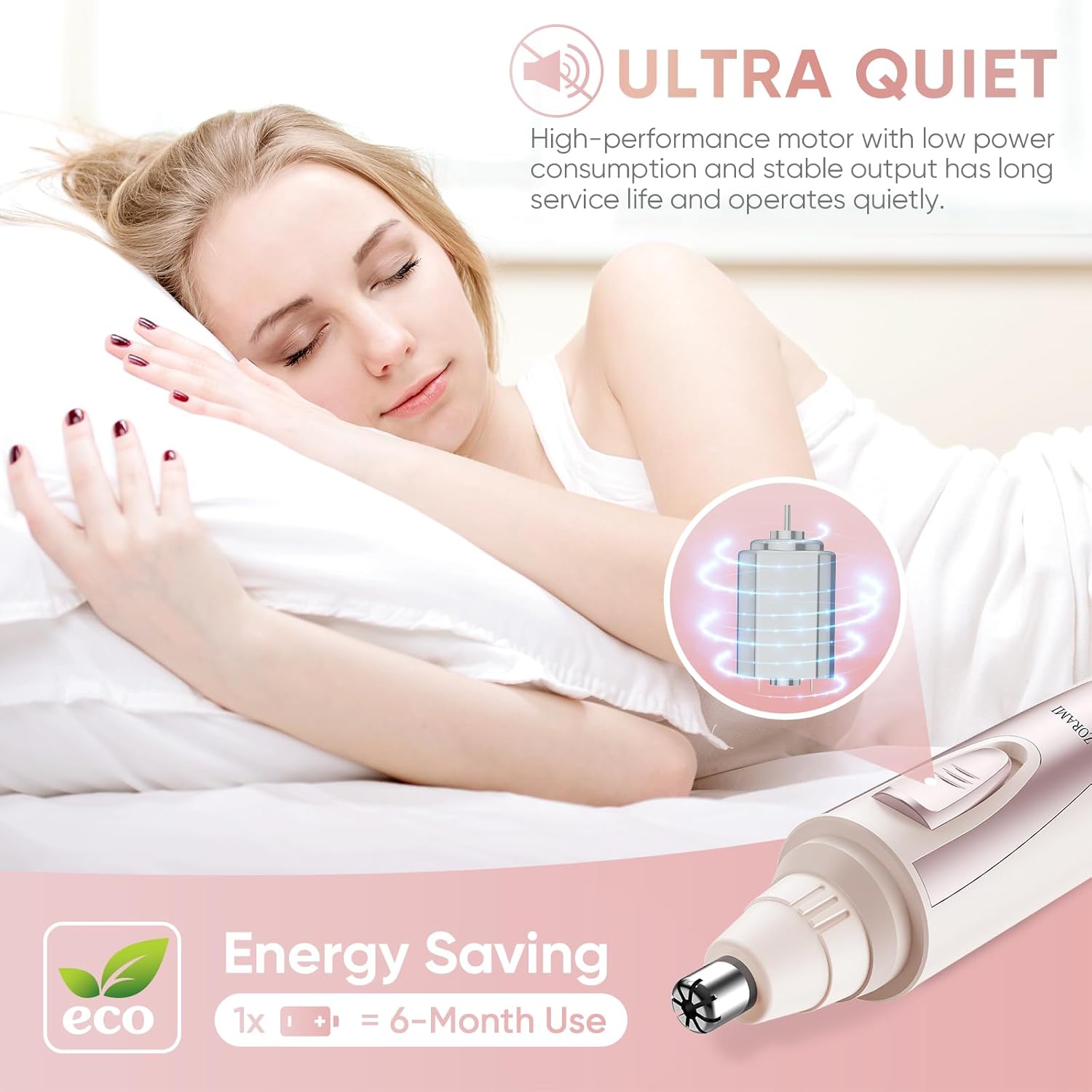 - 【Energy-Saving & Whisper-Quiet Operation】 The upgraded motor is more powerful but less power-consuming by 5%. 1pc AA battery (NOT included) can run for more than 6 months for 5mins’ of use at a time. This nose trimmer is suitable for road trips and travel. With operating noise less than 50db, use the nose hair clippers freely.