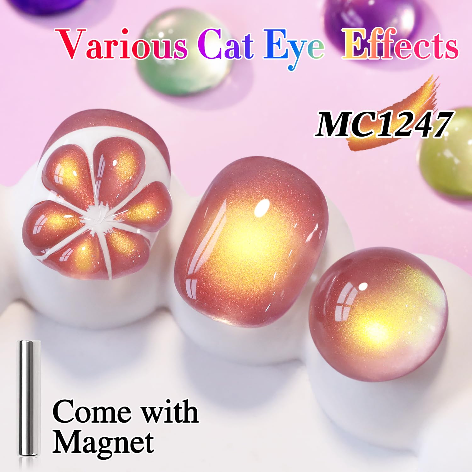 - Cat Eye Gel Nail Polish : Double Rhythm cat eye gel nail polish kit includes 1 color 15ml / 0.5 fl.oz gel nail polish. The cat eye gel can be combined with different bacse colors arbitrarily, you can get different colors nail art.You can use different base coat to creat different sytles.