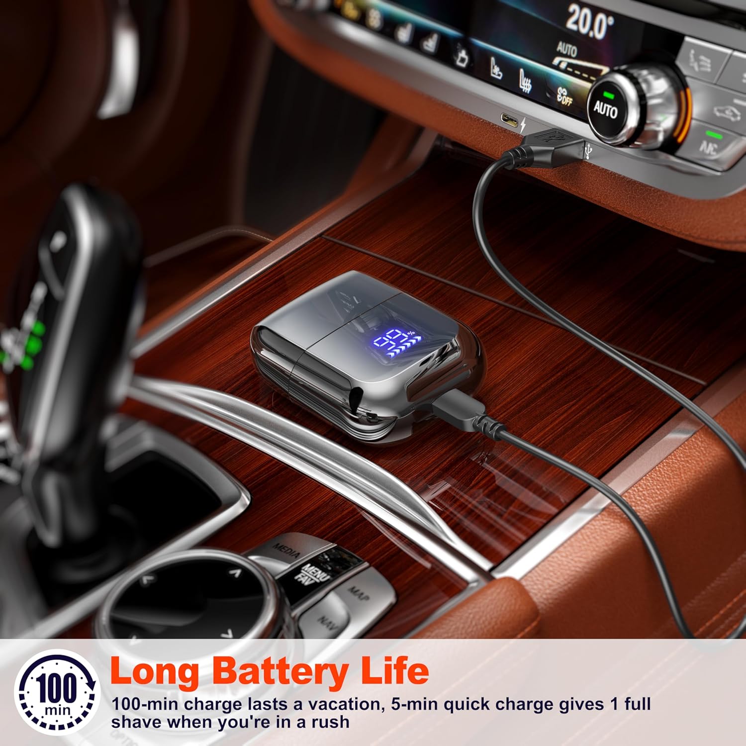 - Travel Companion: This lightweight cordless shaver fits easily in your gym bag or backpack, with a secure cover for quick grooming anywhere; USB-C charging keeps you powered at work, in the car, or on the go; Equipped with a smart travel lock function, it can prevent accidental opening during travel, protecting the electric razor from damage or power consumption.