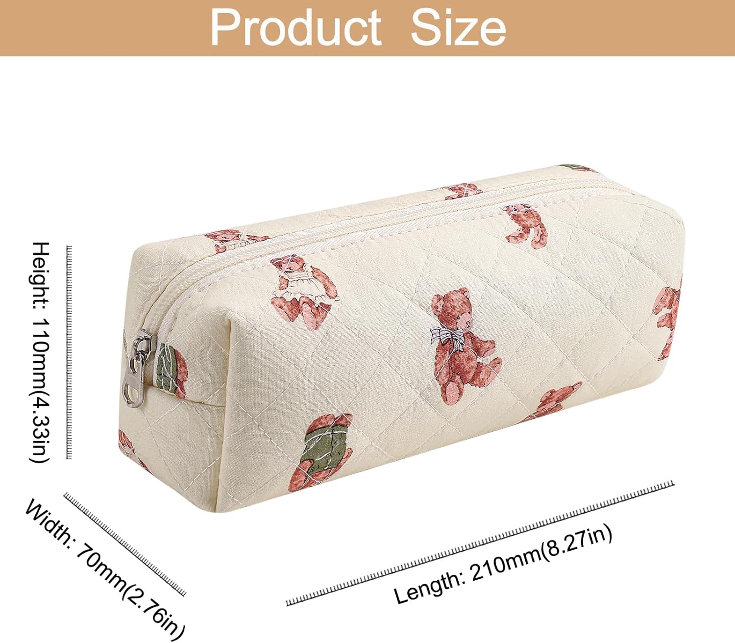Cute Floral Cotton Makeup Brush Cosmetic Bag for Women, Travel Quilted Zipper Make Up Bag, Flowers Toiletry Organizer Case Kawaii Makeup Cosmetic Travel Cloth Pouch (Rabbit Bear)