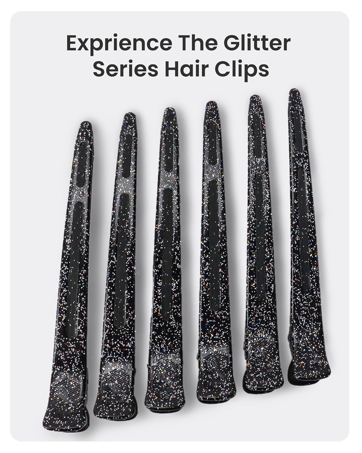 AIMIKE Extended Sectioning Hair Clips w/Built-in Silicone Band, 4.8" No-Crease Non-Slip Hair Styling Clips for Thick, Curly Hair –Blow Drying, Hair Rollers, Rust-Free – 6 Pack, Glitter Duckbill Clips