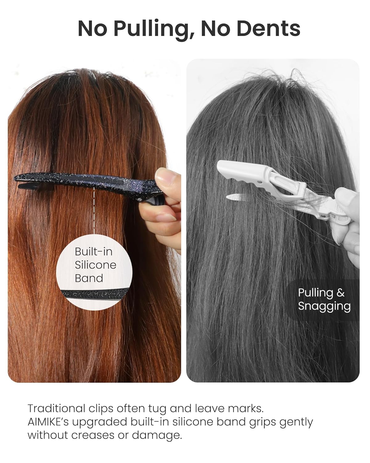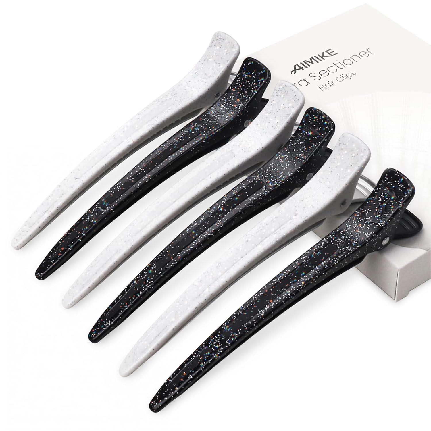 AIMIKE Extended Sectioning Hair Clips w/Built-in Silicone Band, 4.8" No-Crease Non-Slip Hair Styling Clips for Thick, Curly Hair –Blow Drying, Hair Rollers, Rust-Free – 6 Pack, Glitter Duckbill Clips