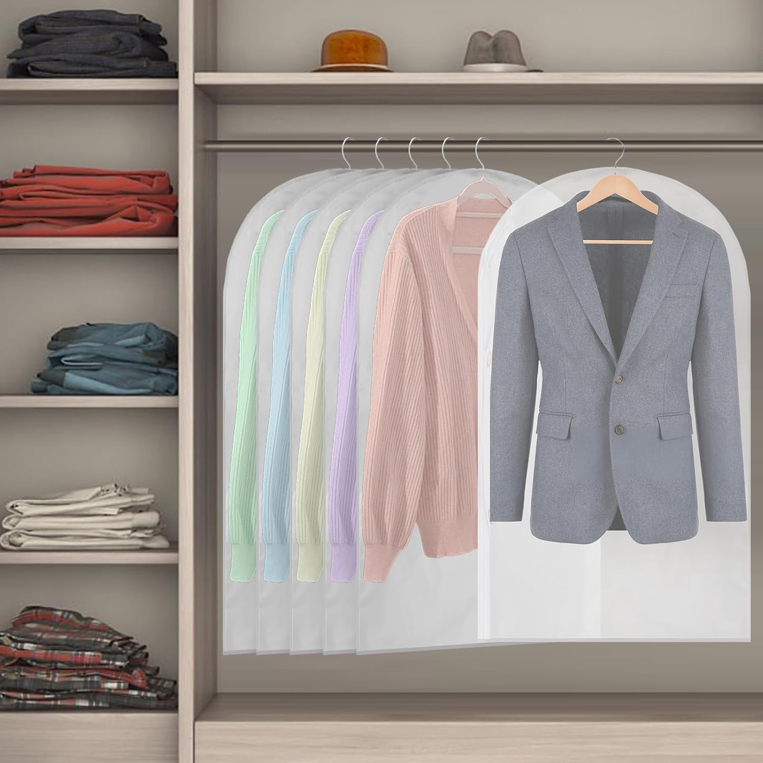 - Versatile Use: These suit cover bags are suitable for a wide range of clothing, including suits, shirts, blouses, jackets, sport coats, sweaters, and winter coats, keeps your closet tidy. It as a travel garment bag on a trip or as hanging storage bags for moving