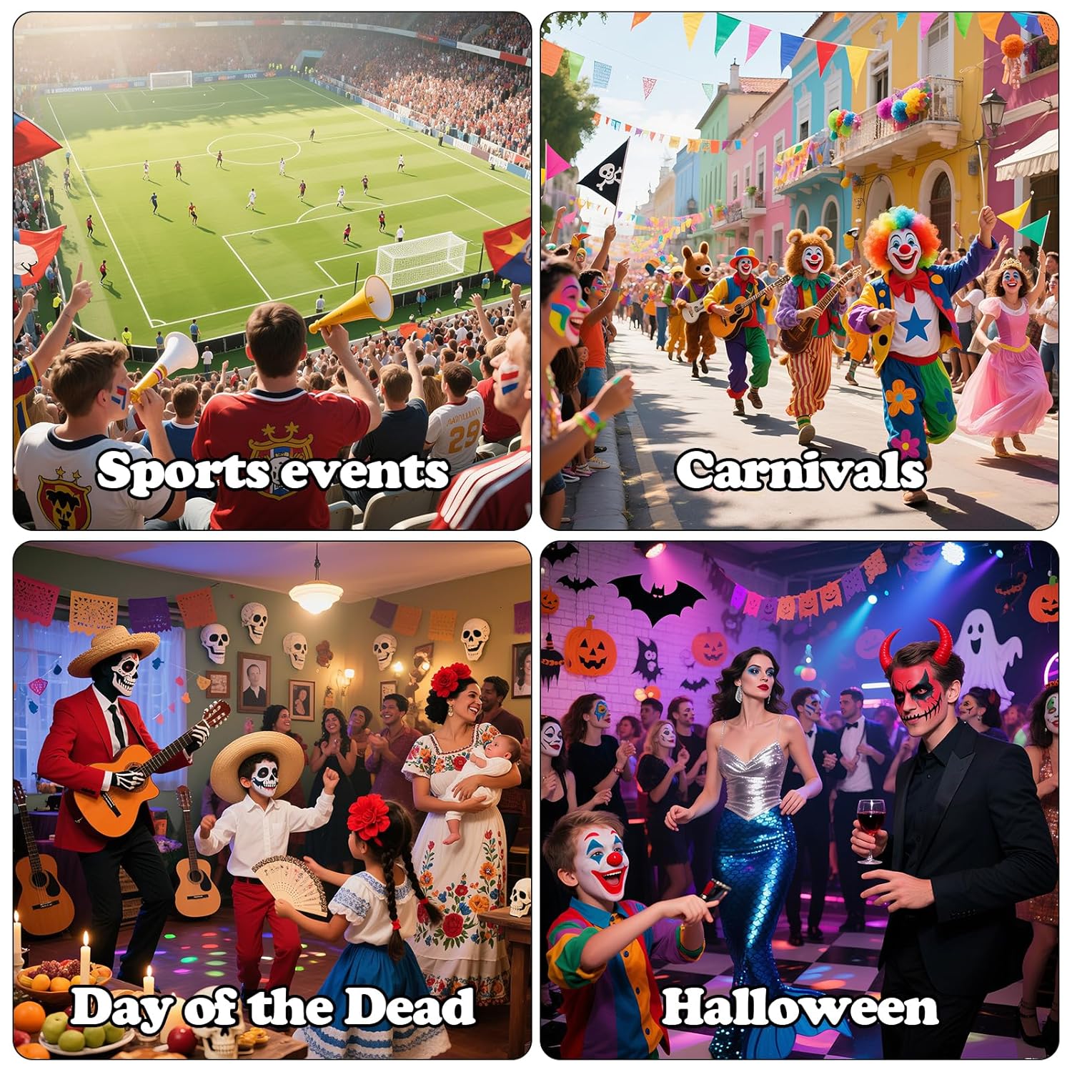 - [For a Variety of Occasions] It is not only suitable for embellishing and brightening daily makeup, but also for sports events, carnivals, Day of the Dead, Halloween, theme parties, performance stages and various artistic creations. You can create special effect makeup for vampires, clowns, pantomime, zombies, Hulk, Avatar, Smurfs, demons, monsters, etc
