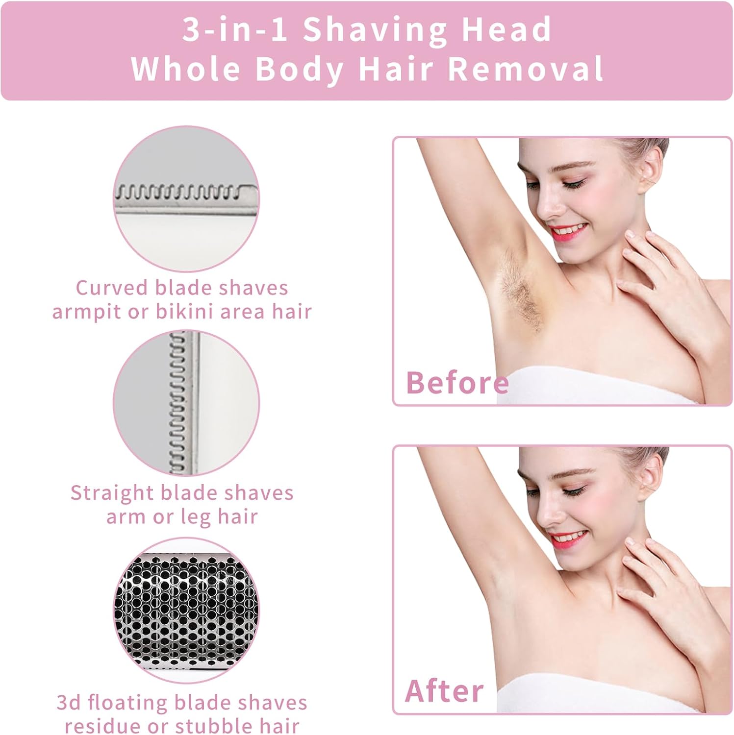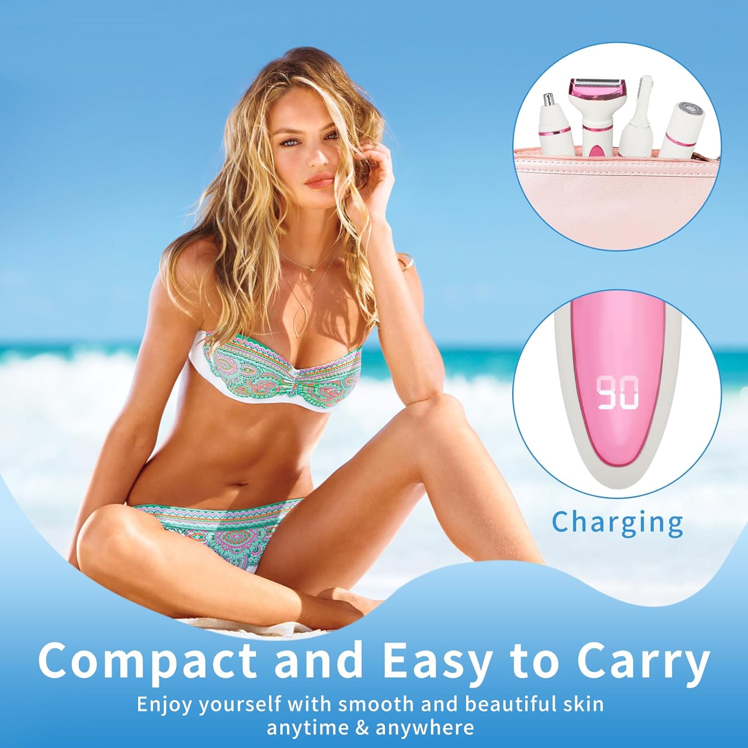 - 4-in-1 Multi-Functional Design:Beanify electric ladies' shaver includes 4 detachable heads: body hair trimmer, nose hair trimmer, eyebrow trimmer, and facial hair trimmer. It effortlessly meets all your grooming needs, whether it's removing fine facial hair, trimming underarms and legs, or cleaning up bikini lines. The versatile design makes it an essential tool for comprehensive beauty care