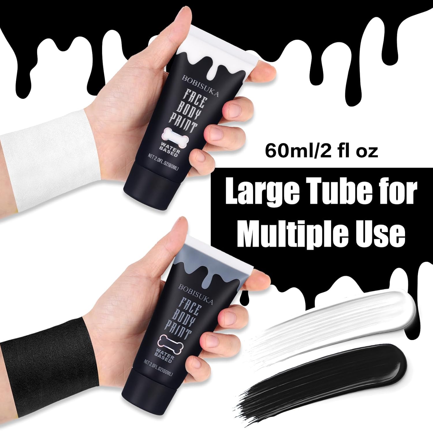- 【Vibrant Color】BOBISUKA face and body paint kit includes 2 vivid colors: black, white. Ideal for endless creative possibilities at parties, cosplay, and events.