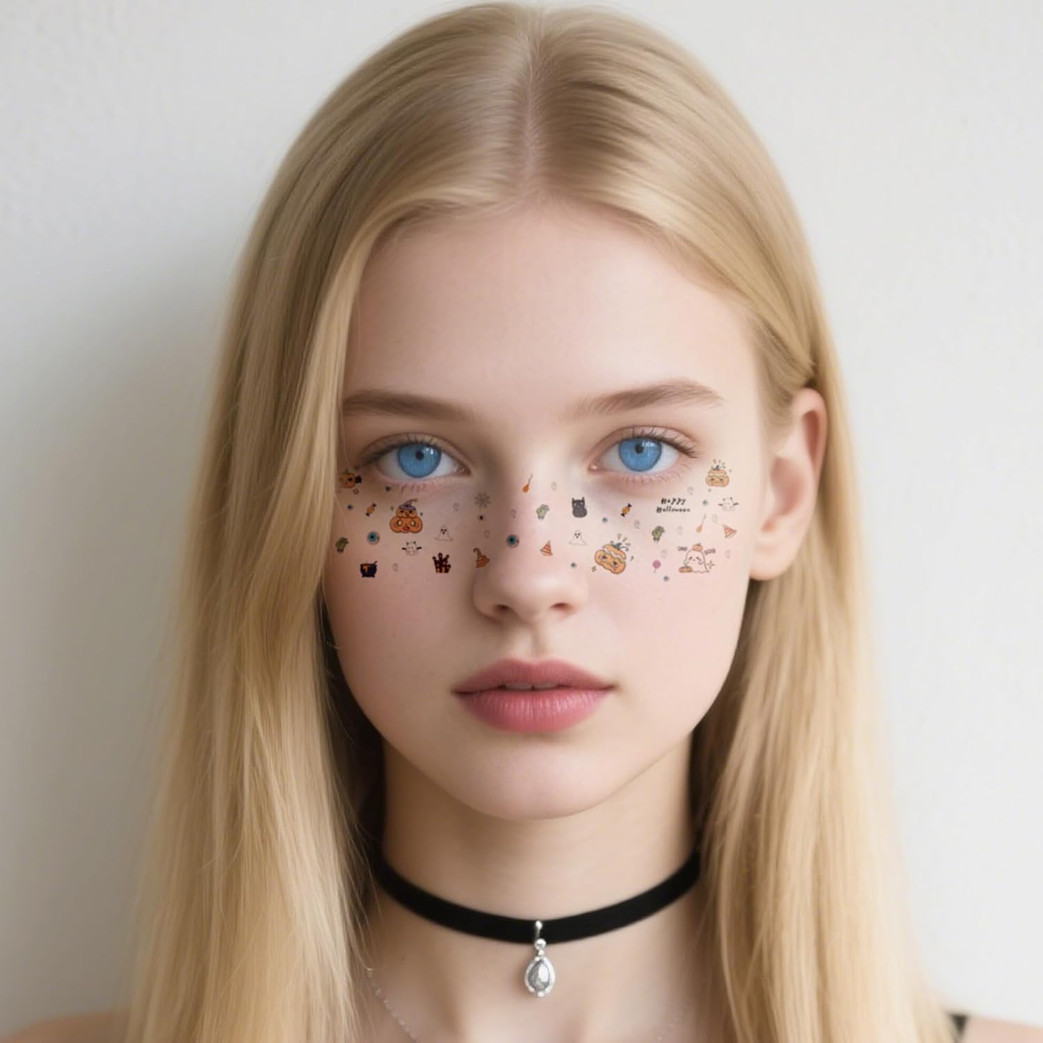 - 【What You Get & Quantity】This pack contains 8 unique Halloween face freckles temporary tattoos, ensuring you have plenty of options to match multiple costumes or share with friends and family. These Halloween temporary tattoos are a quick and easy way to create a stunning look