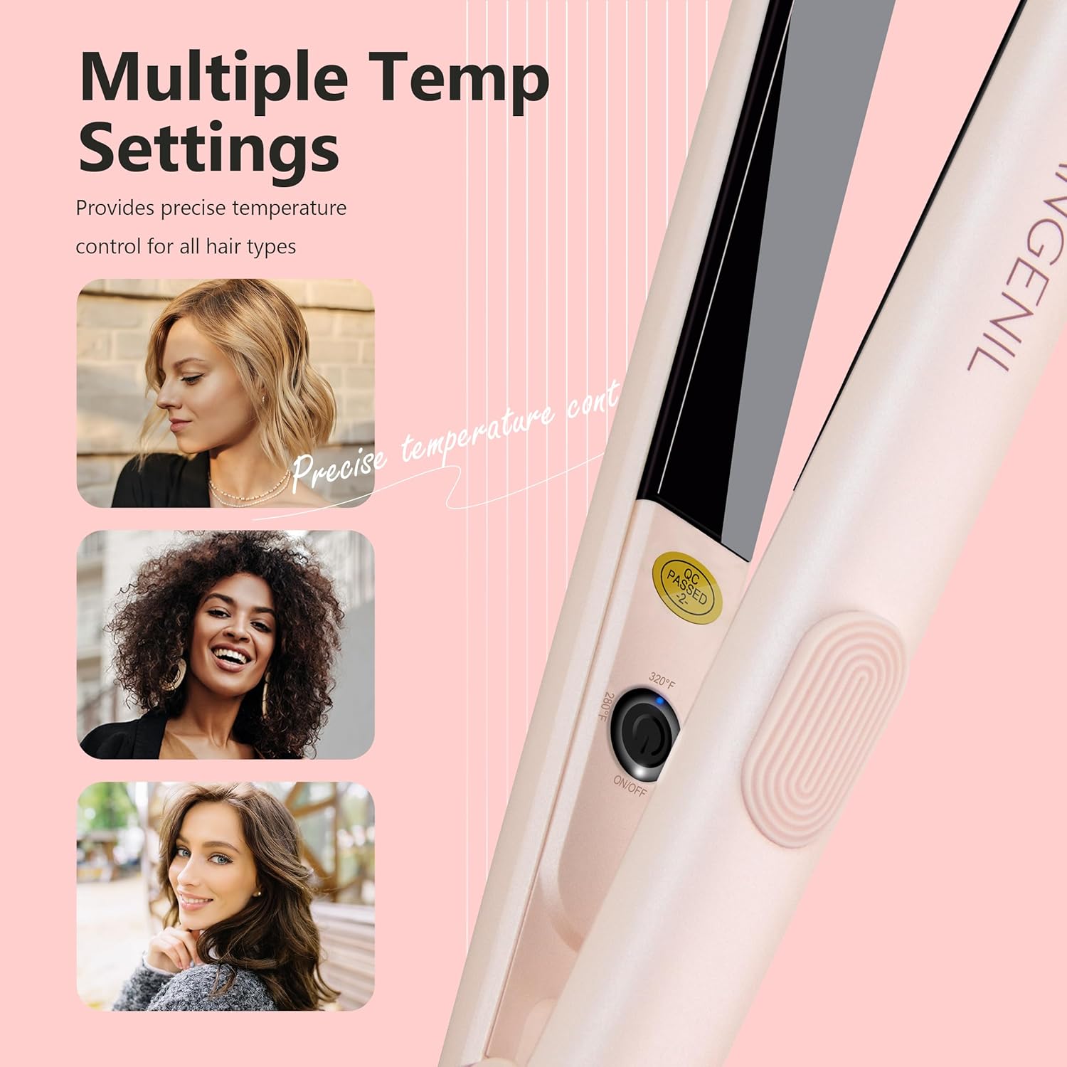 ANGENIL Pro Mini Flat Iron for Short Hair, Dual Voltage Mini Hair Straightener, Small Flat Iron 0.7 Inch, Travel Size Anti Scalding Silicone Hair Straightener, Suitable for Short Hair, Bangs, and Fine