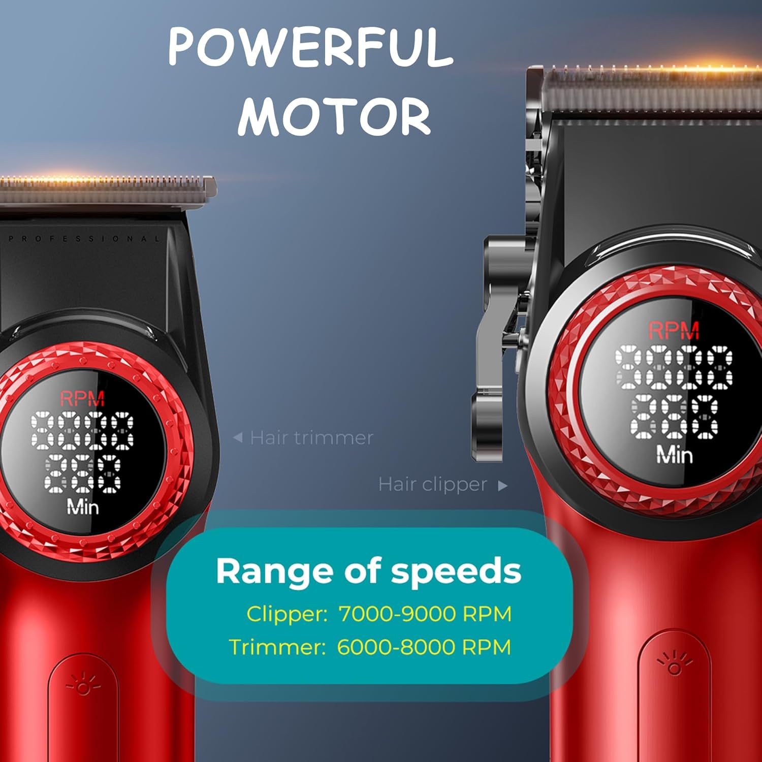 - Ergonomic Design with Ultra-Large LED Displays for Easy Control: Each tool in this 4-in-1 grooming kit is designed with an ergonomic handle for comfort and ease of use. The smart LED displays on the clipper, trimmer, shaver, and dryer show battery life, speed settings, and charging status, ensuring seamless grooming. The sleek design makes these tools easy to handle and use for extended periods