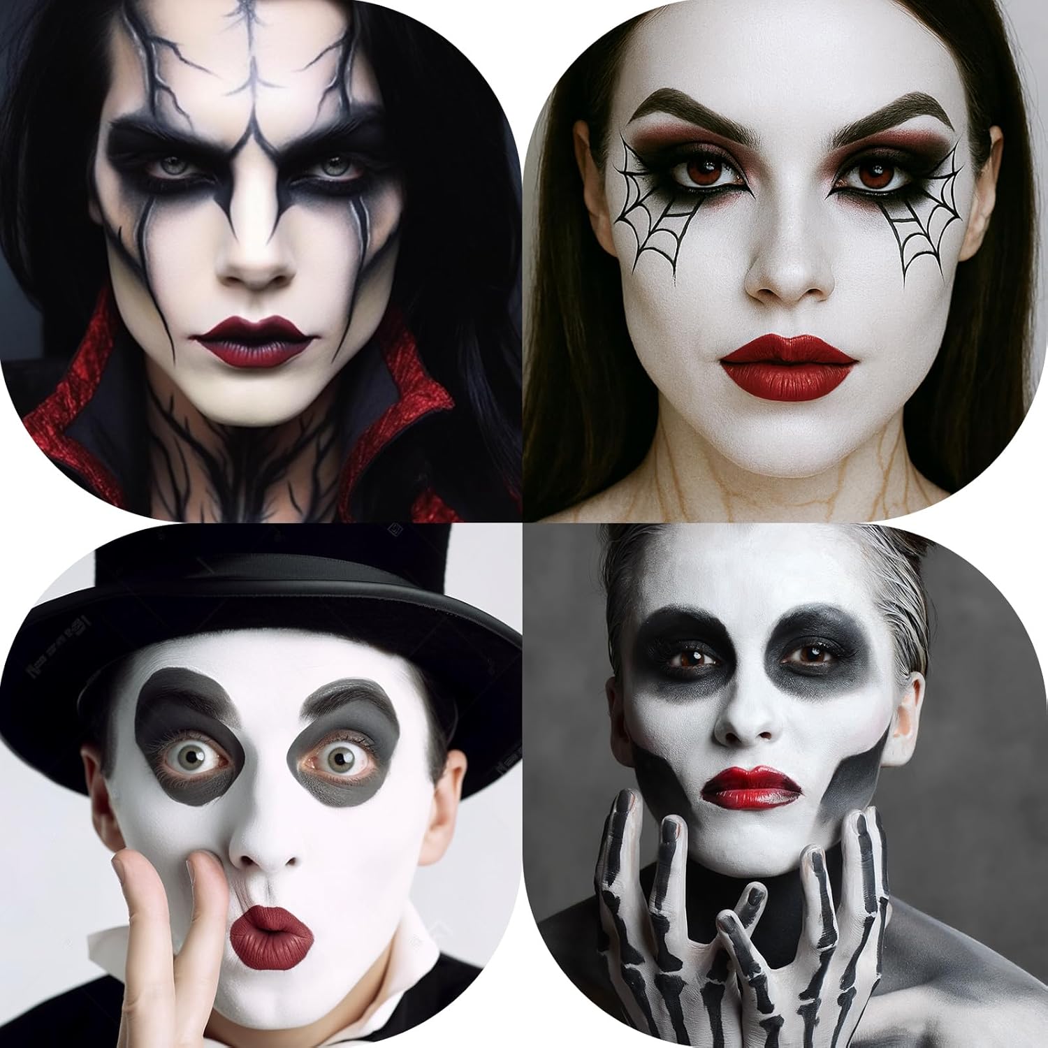 - 【Multi-Occasion Use: Beyond Halloween】Perfect for themed costume parties, Carnival, cosplay conferences, school plays, stage, movie set, theatrical performances, Proms, Pride events, sports fan makeup or just daily creative artistry creations. 【Sealing Option】For longer wear on these special occasions and holidays, set with a translucent powder (though this may require makeup remover for cleanup).