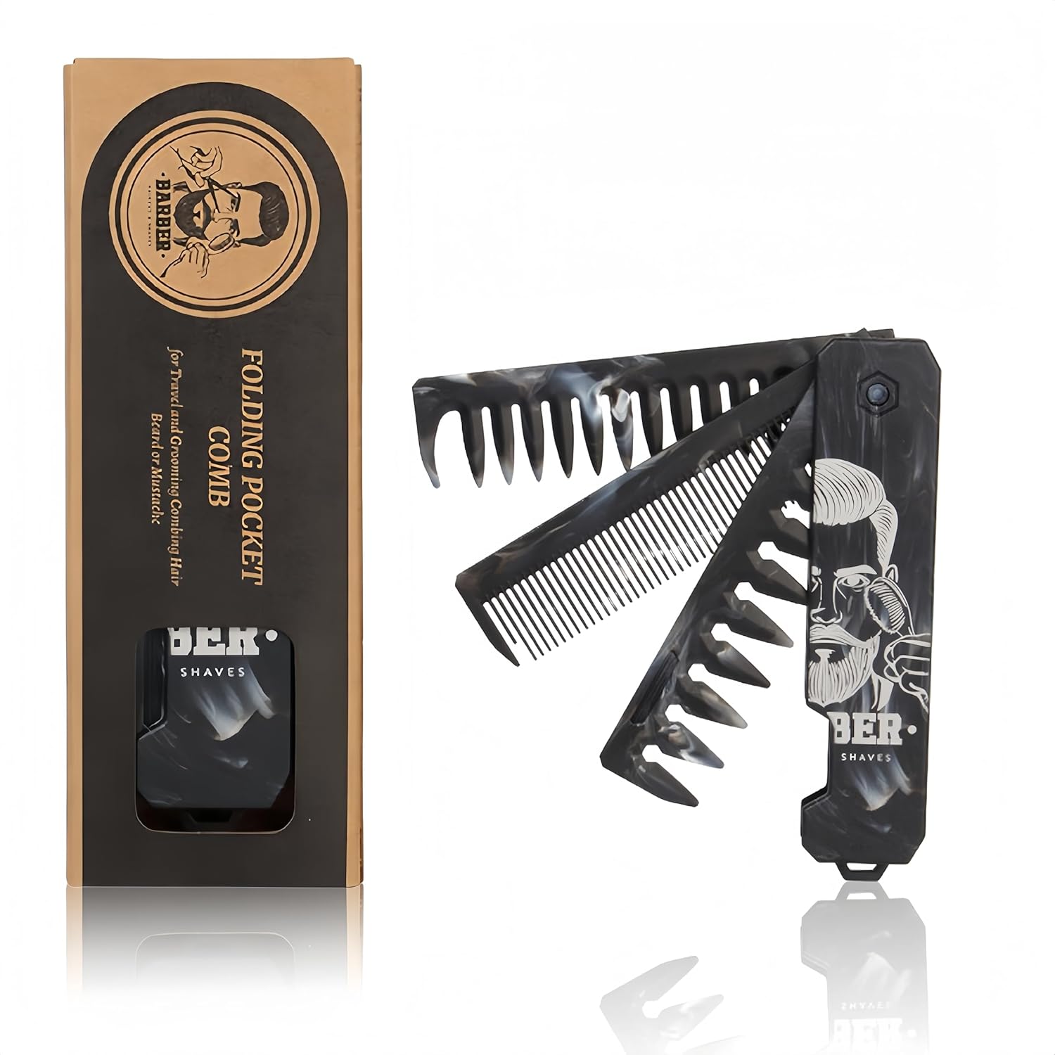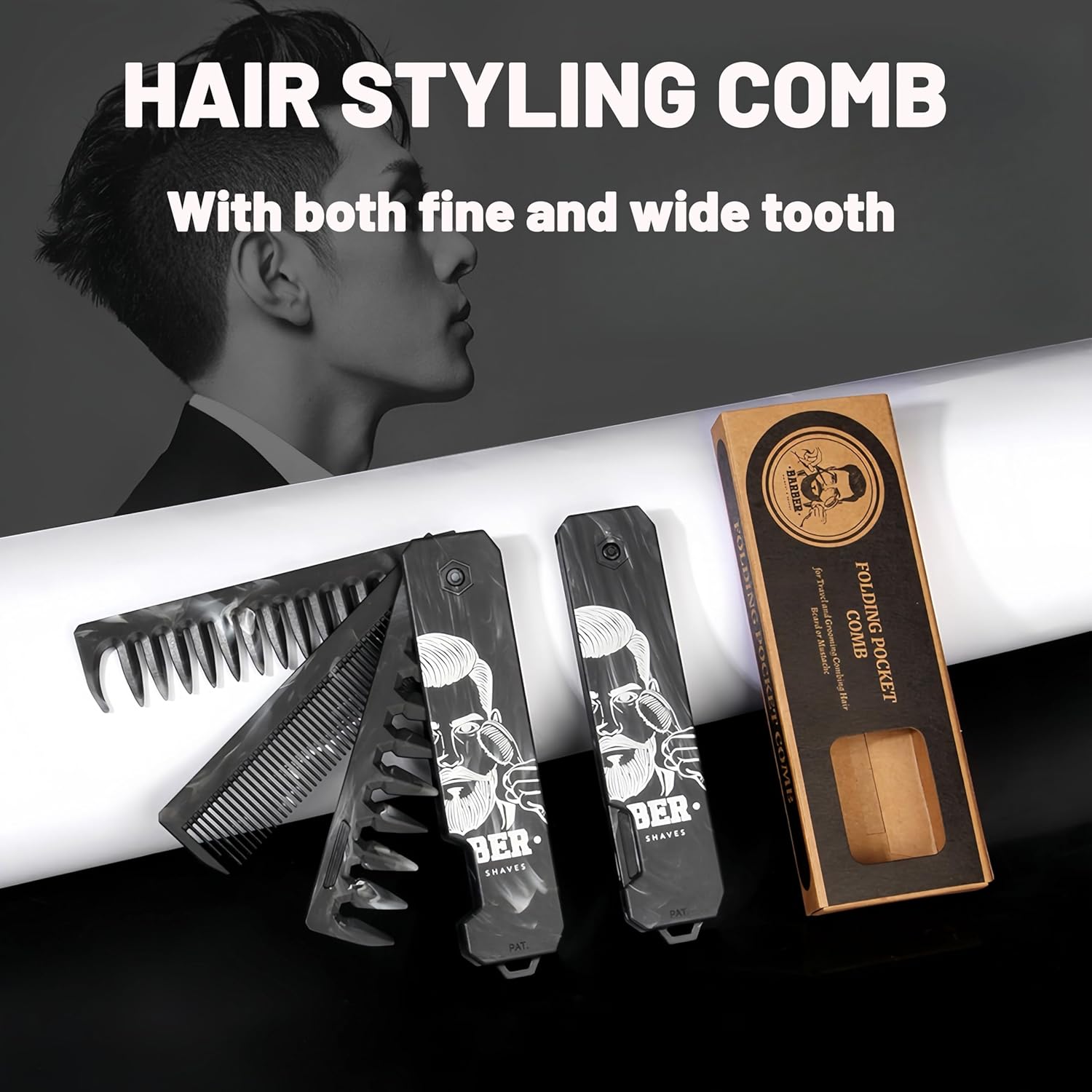 - 3 In 1 Folding Pocket Comb for Men, Multi-Function Foldable Comb with Fine & Wide Tooth, Styling Comb for Travel and Everyday Grooming Combing Hair, Beard or Mustache