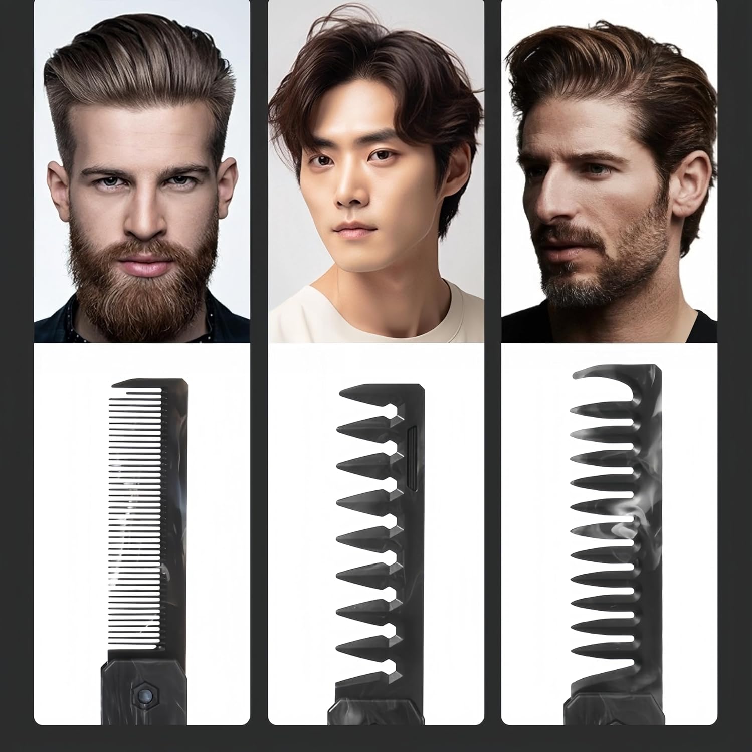 1PC 3 In 1 Folding Pocket Comb for Men, Fine & Wide Tooth for Travel and Everyday Grooming Combing Hair, Beard or Mustache Styling Comb for Slicked-back, Quiff, Pompadour, Fauxhawk, Undercut