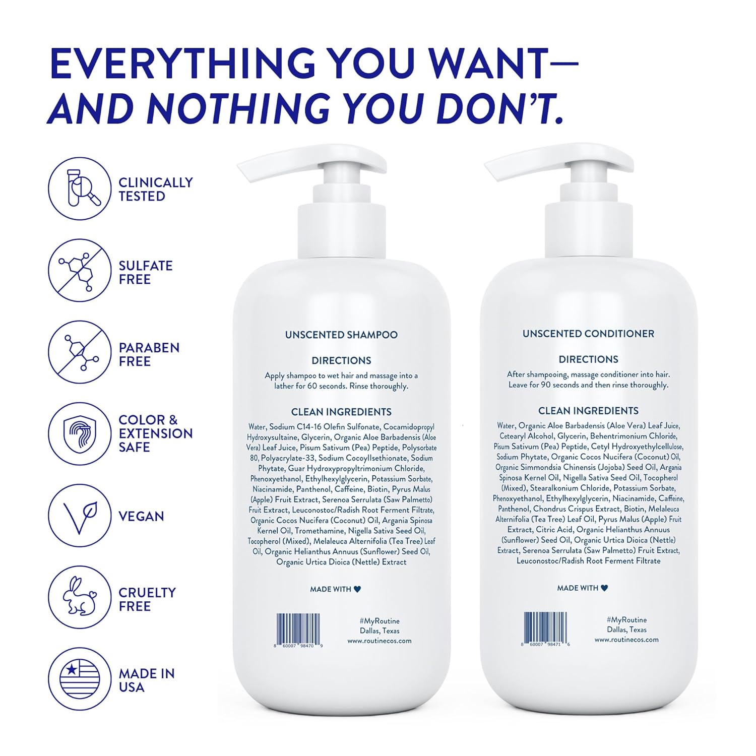 - ROUTINE WELLNESS SHAMPOO AND CONDITIONER SET: Infused with hair strengthening ingredients for women and men, Routine Wellness Shampoo and Conditioner reduces thinning caused by breakage, ensuring your hair feels stronger and fuller with our best shampoo and conditioner.