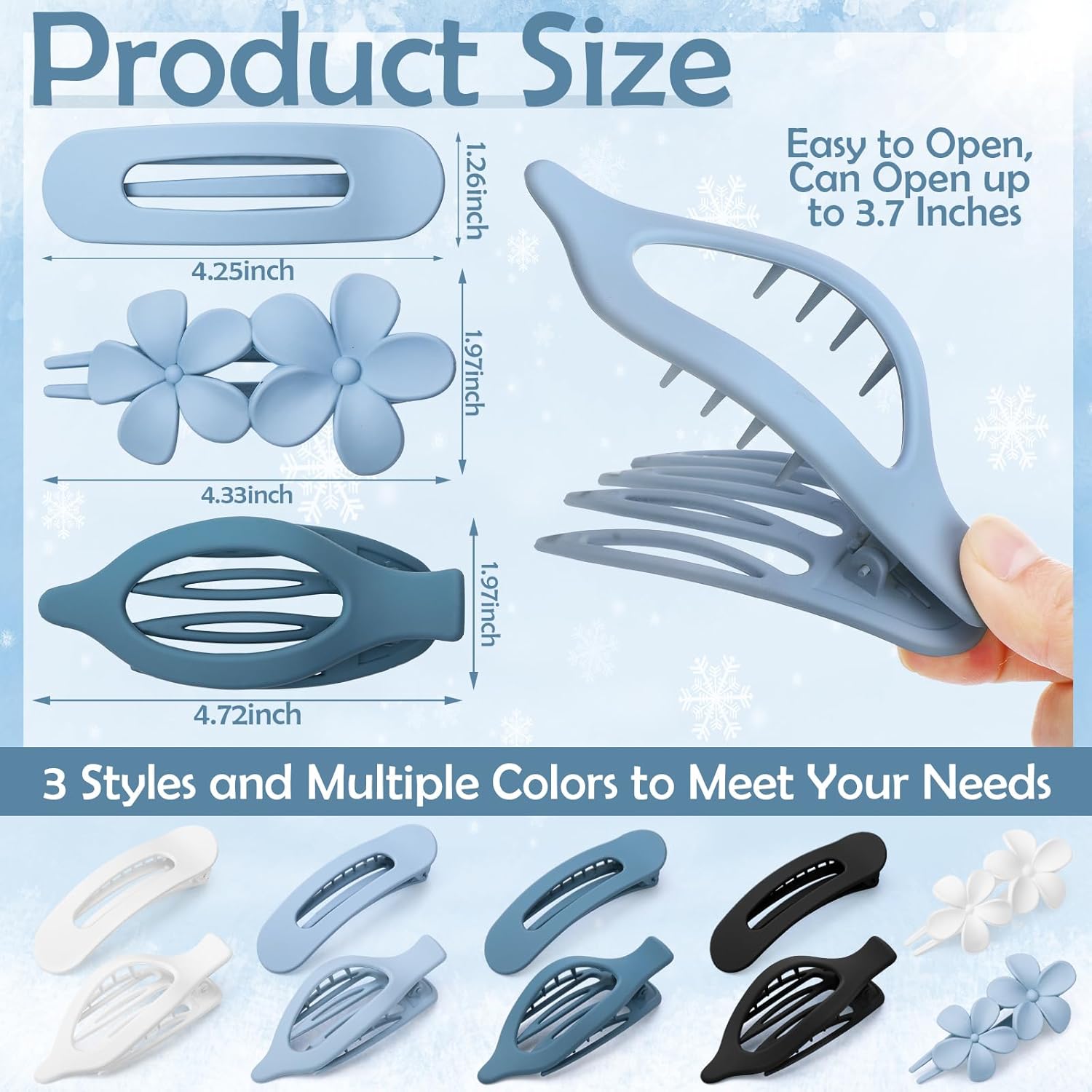 - 【3 Styles】You will receive 4 French Flat Claw Clips, 2 Flower Flat Hair Clips and 4 Flat Hair Clips. Refreshing blue and classic black and white design, the style is simple and fashionable, suitable for daily wear, beach, party, birthday, festival and other occasions