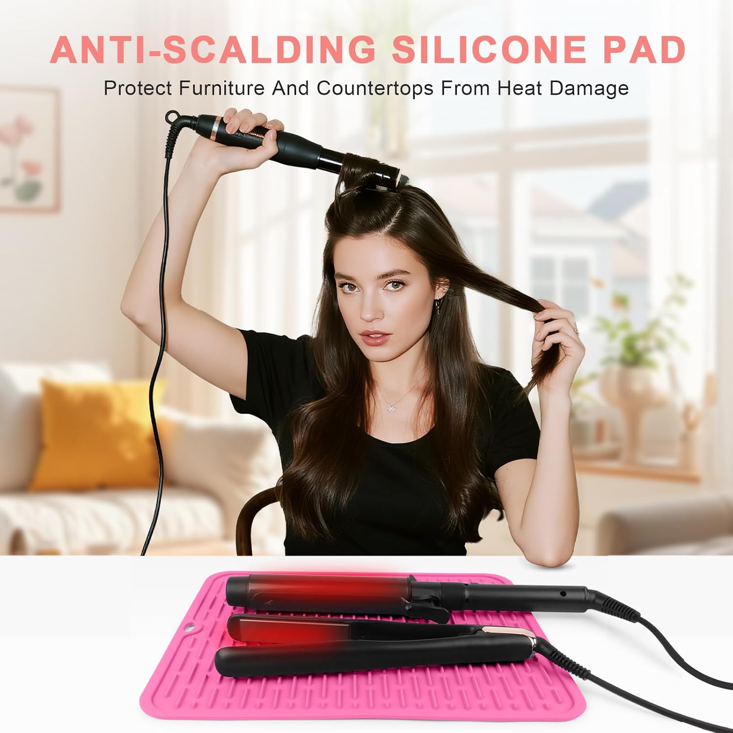 Oversize Silicone Heat Resistant Mat for Curling Irons, Flat Irons, Hair Straighteners and Hot Hair Styling Tools, Portable Hot Tools Sleeve Pad for Travel Vanity Salon(14.2" x 11.0")