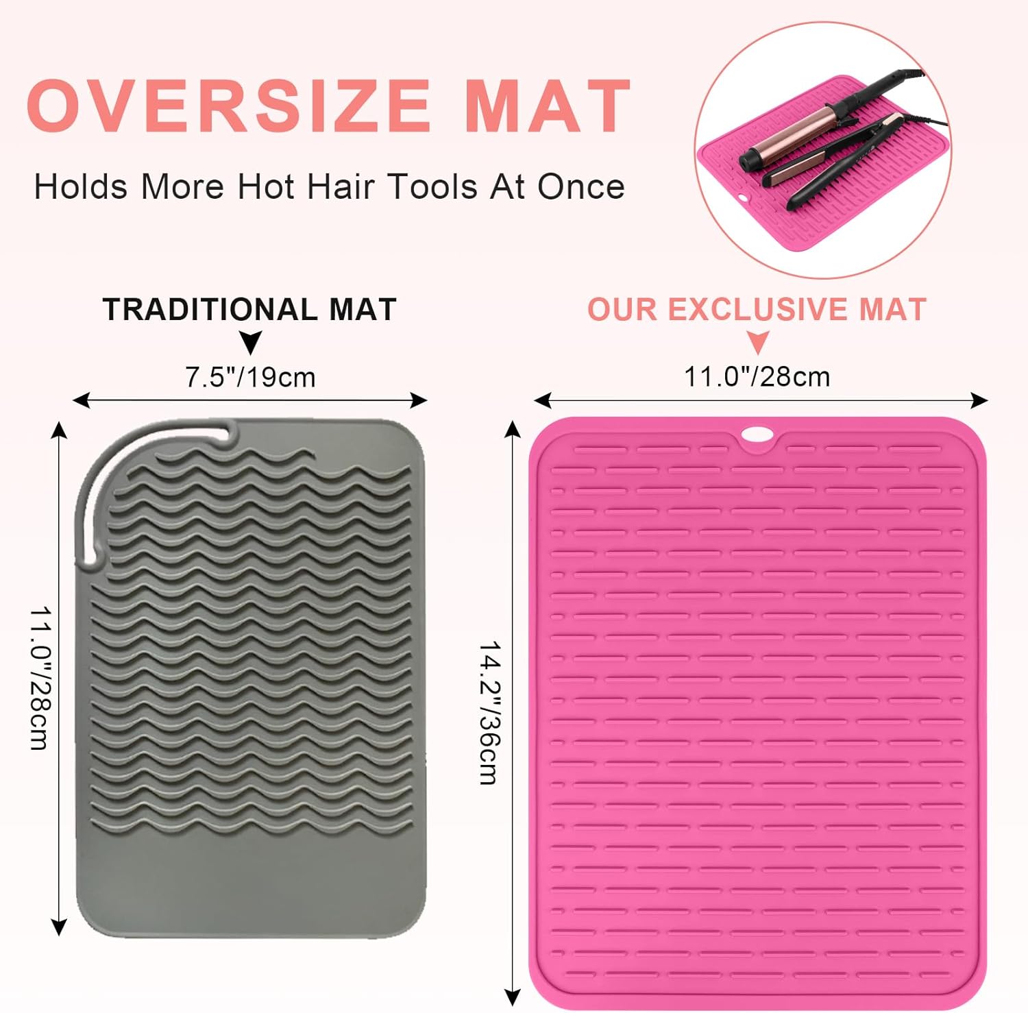- Oversized Hair Tools Mat: The size of the curling iron mat is 14.2" x 11.0"; Our extra-large mat offers ample space to safely rest multiple styling tools simultaneously. Ideal for home, travel, gym and hair salons