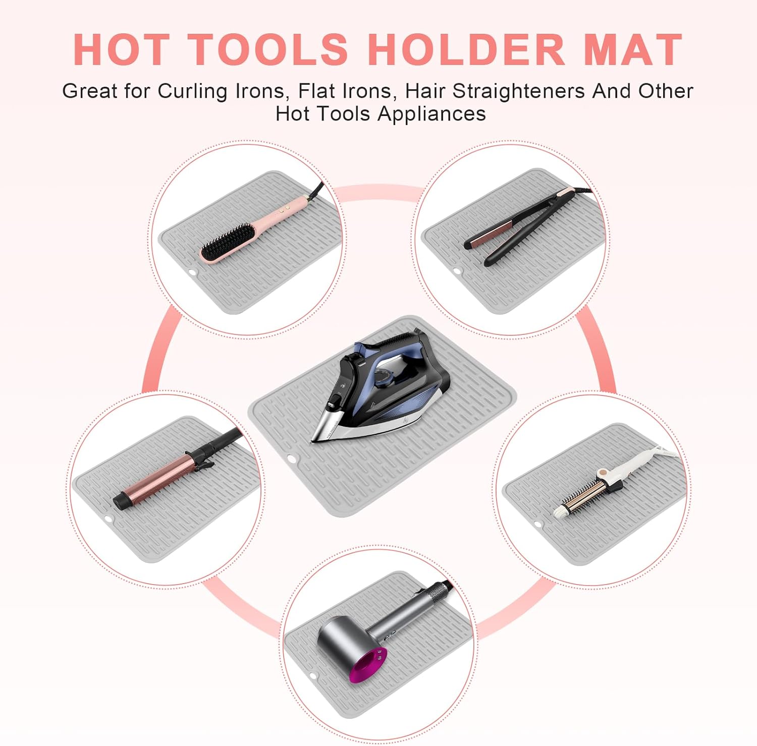 - Product Benefits : Heat Resistant Silicone, Extra Large Size, Durable and Non-Slip, Comes with Velcro, Convenient for Travel and Storage, Uses for Multiple Hot Hair Tools Heat Resistant Silicone, Extra Large Size, Durable and Non-Slip, Comes with Velcro, Convenient for Travel and Storage, Uses for Multiple Hot Hair Tools