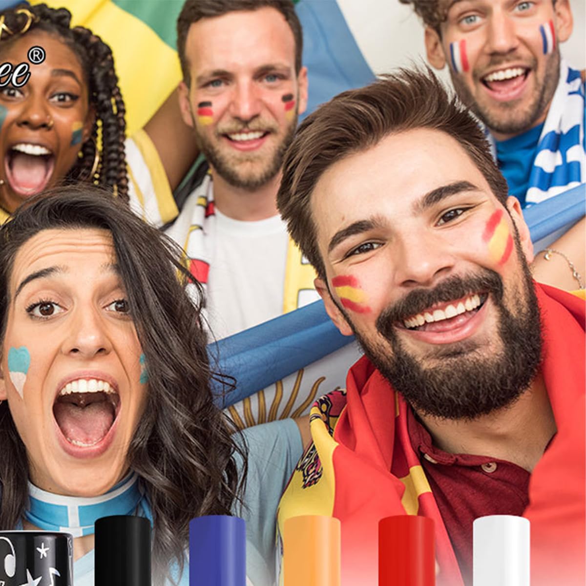 - Waterproof :Unique formula makes it water and sweat resistant,hold up well with the sweat when at sport games or get caught in the rain.Easy to use with our face painting stick,directly apply it on the face or body
