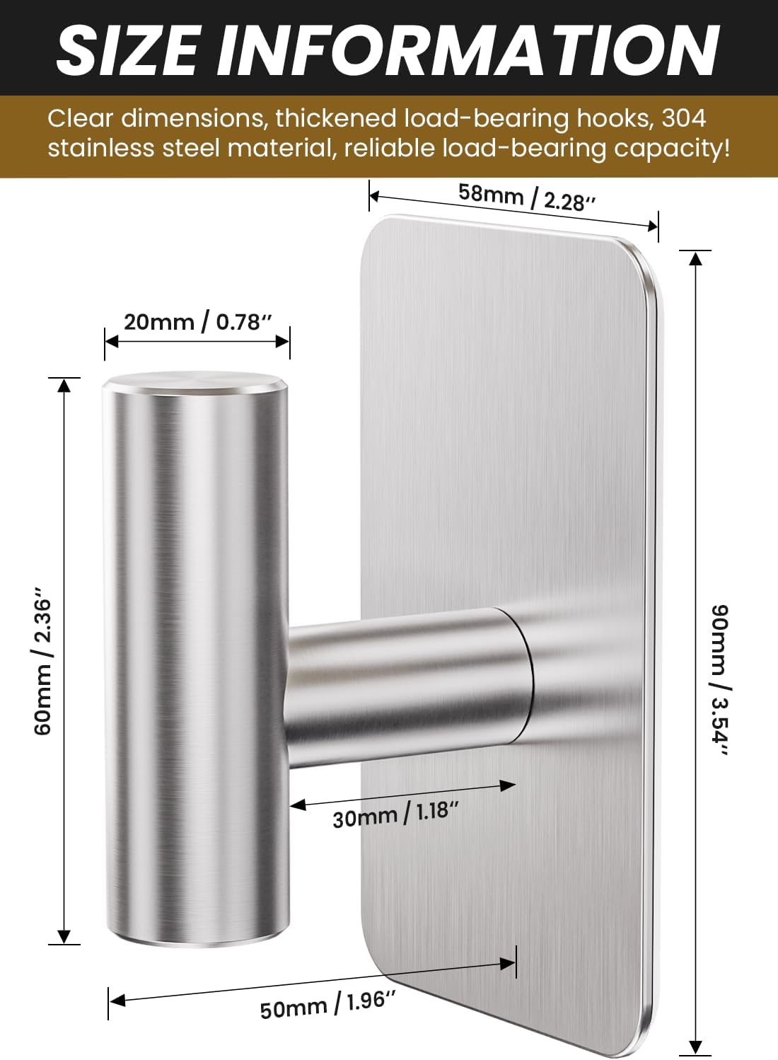 - 【Waterproof and Rustproof】Crafted from high-quality stainless steel, these adhesive towel hooks are easy to clean and built to last.