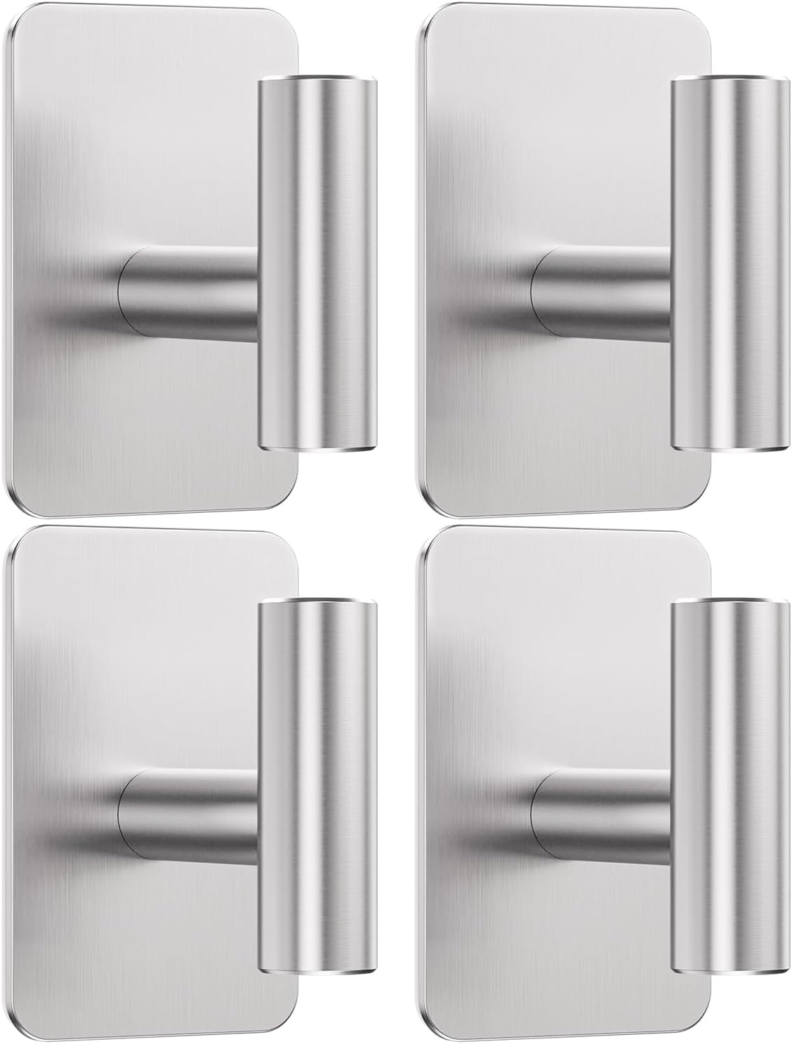 Heavy Duty Adhesive Hooks - 26lb Max, Sticky Wall Hooks Waterproof Stainless Steel for Hanging Towel, Coat, Robe, Towel Hooks Stick on Bathroom, Kitchen, Shower, Door (Silver, 4 Pack)