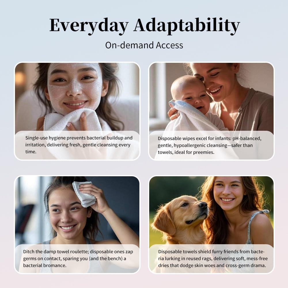 - Silky Plant-Based Bliss: Woven from 100% plant-based fibers, our disposable face towels cradle sensitive skin with cloud-like softness, offering a hypoallergenic, spa-worthy cleanse for travel or gym routines.