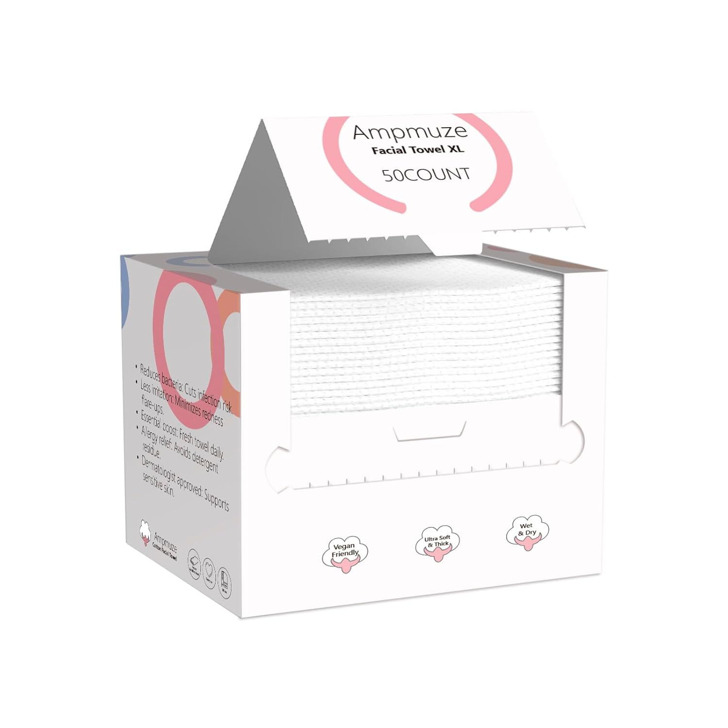 Disposable Face Towels, 10"×12" Face Towel, Towelettes XL, Ultra Soft & Thick Makeup Remover Dry Wipes for Sensitive Skin, Chemical Free 50 Count (1 Pack)