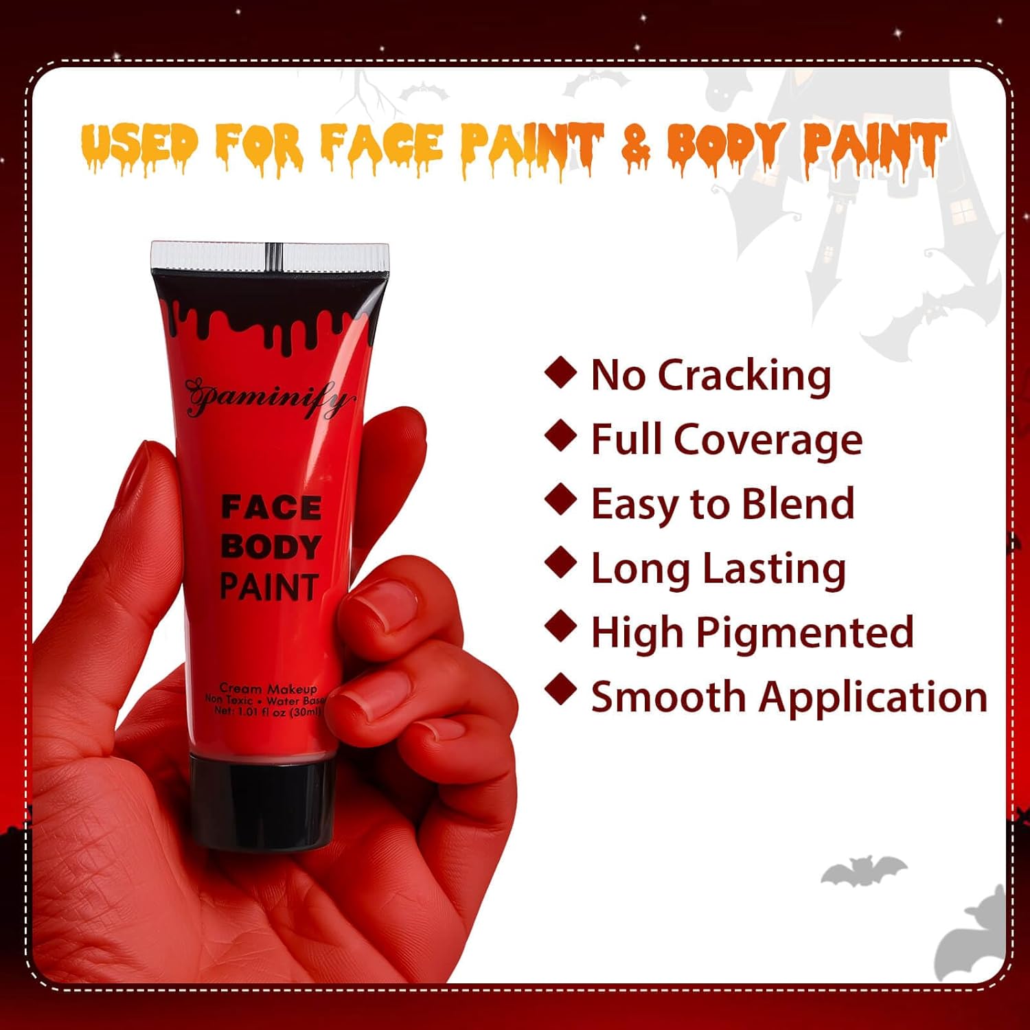 - Devil Red Face Paint - Safe & Long-Lasting: Enjoy a 1.01oz of bold, red face body paint offering full coverage for face and body. Made with gentle, non-toxic, and child-safe ingredients. TIP:For best results and long-lasting wear, apply setting powder