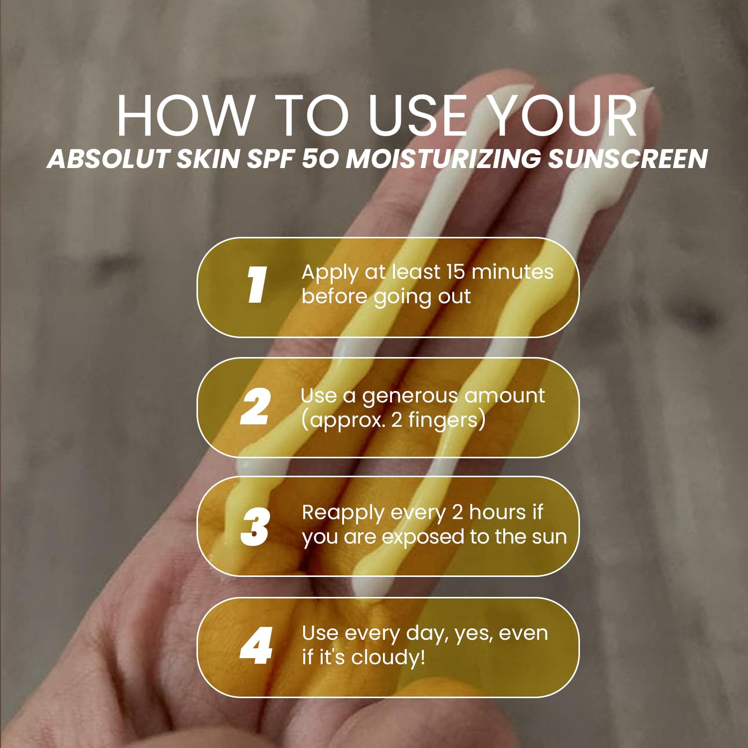 AbsolutSkin SPF 50 Moisturizing Sunscreen β Lightweight Daily Face Sunscreen with Aloe & Vitamin E β No White Cast β 60ml