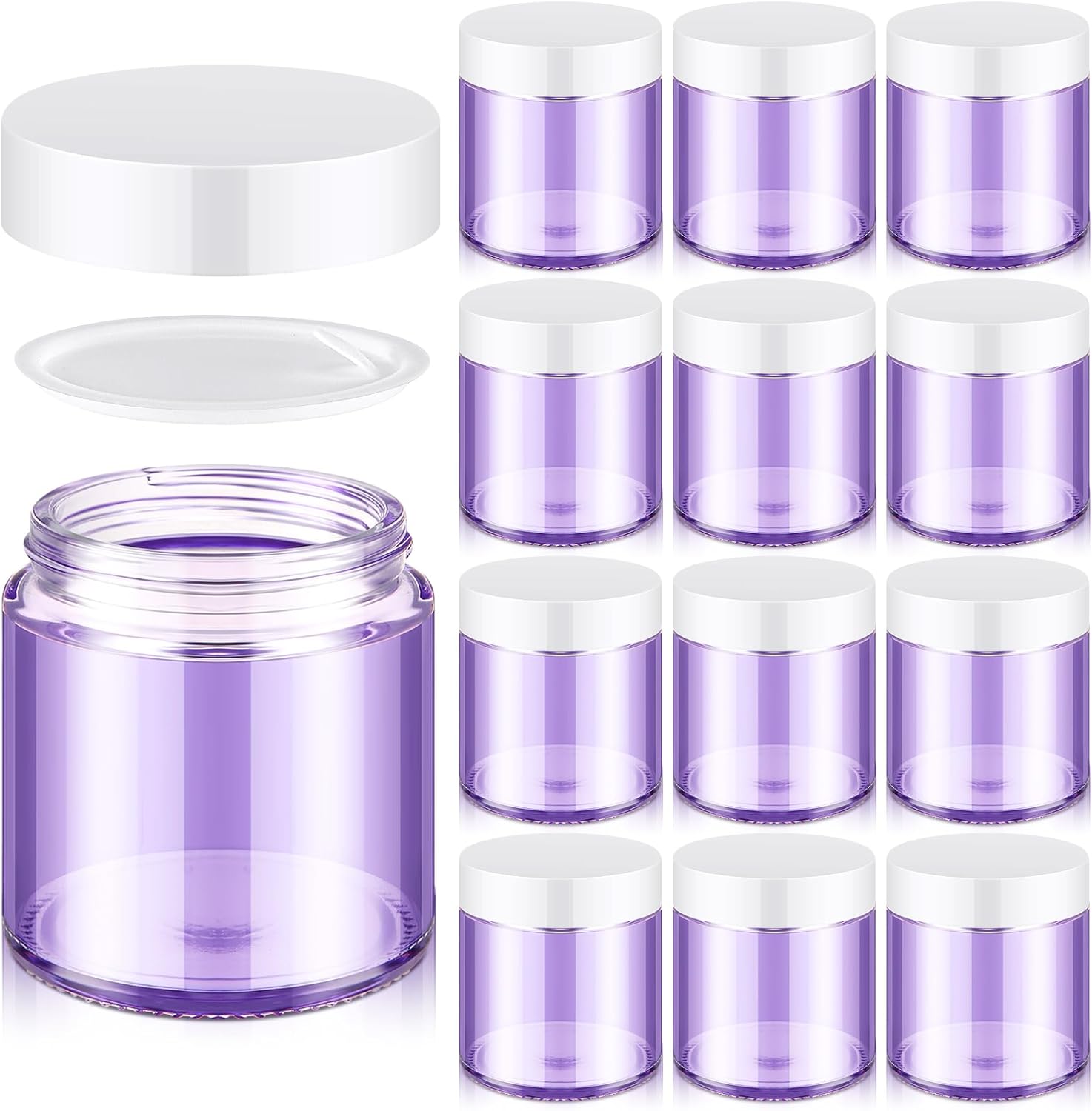 Norme 12 Pcs 4 oz Glass Jars with Lids Leakproof Round Airtight Empty Cosmetic Jars with Inner Liners Lid for Storing Lotions Powder Ointments Candle Making Tins (Light Purple)