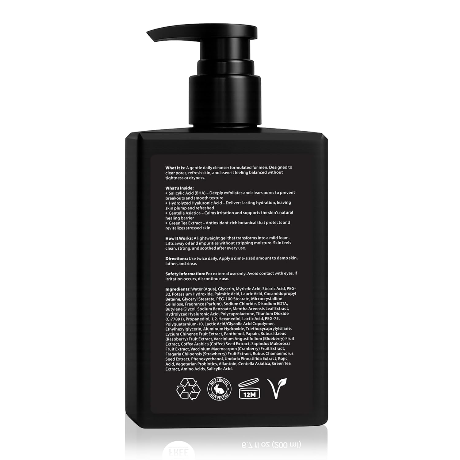 Men’s Facial Cleanser – Gentle Exfoliating & Deep Cleansing Face Wash for Dry, Sensitive, Oily & Acne-Prone Skin – Daily Hydrating Skincare with Salicylic Acid, Green Tea & Amino Acids – 6.7 oz