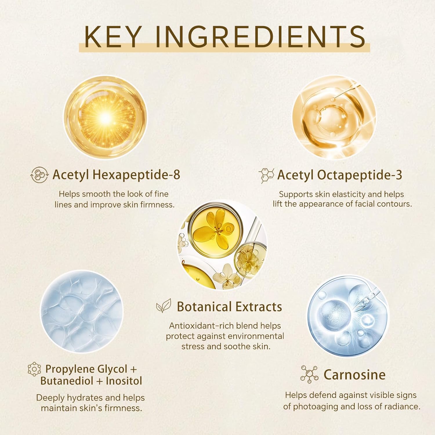 - 【Directions For Use】 After cleansing and toning, evenly apply an appropriate amount of this firming peptide lifting serum for face, then gently massage until fully absorbed. For best results, use morning and evening. When used during the day, follow with sunscreen.
