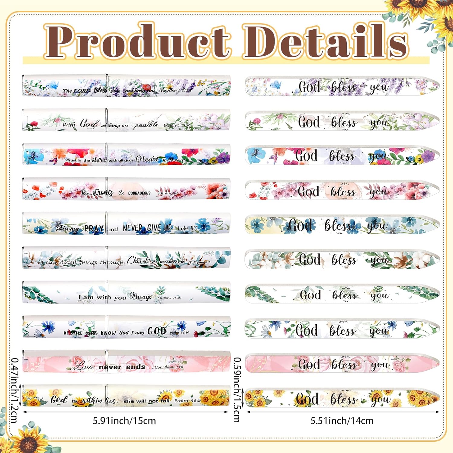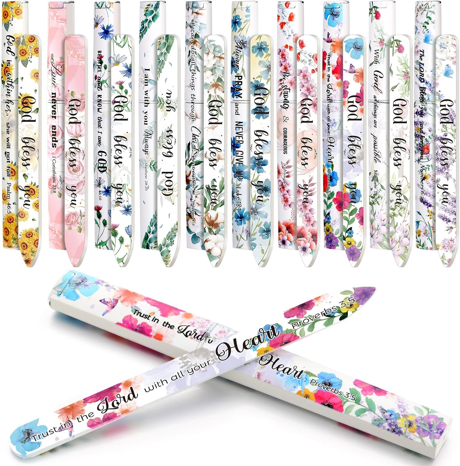 - Christian Bible Verse Religious Gifts: our glass nail file set casing features exquisitely customized Christian designs; The integration of ten distinct Christian Bible verses with floral patterns in this nail file set lends it an air of elegance; You have the liberty to select from ten varied pattern designs to your liking