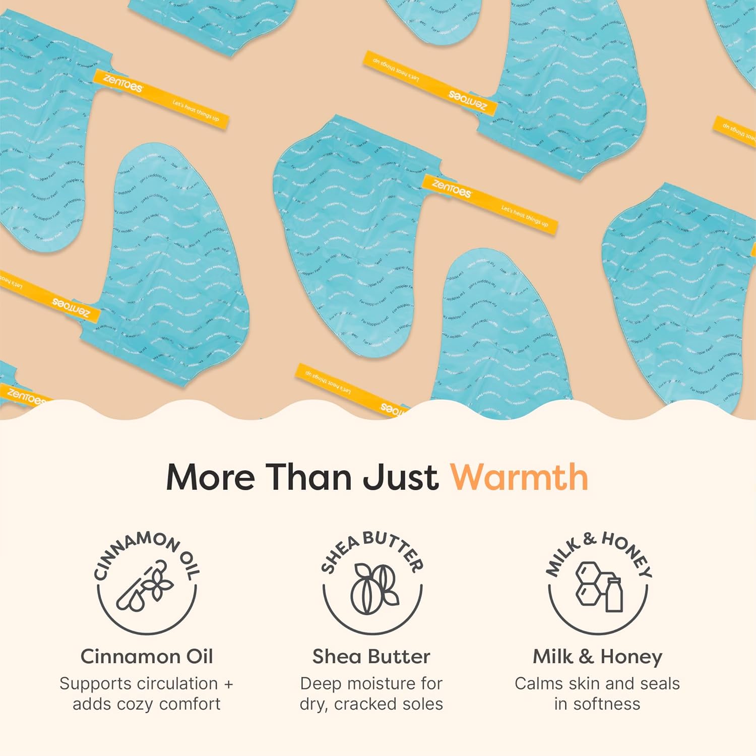 ZenToes Heating Foot Mask - Moisturizing Heated Foot Treatment with Cinnamon Oil & Shea Butter for Tired, Overworked Feet - Paraben Free Spa Experience at Home, 3 Pairs