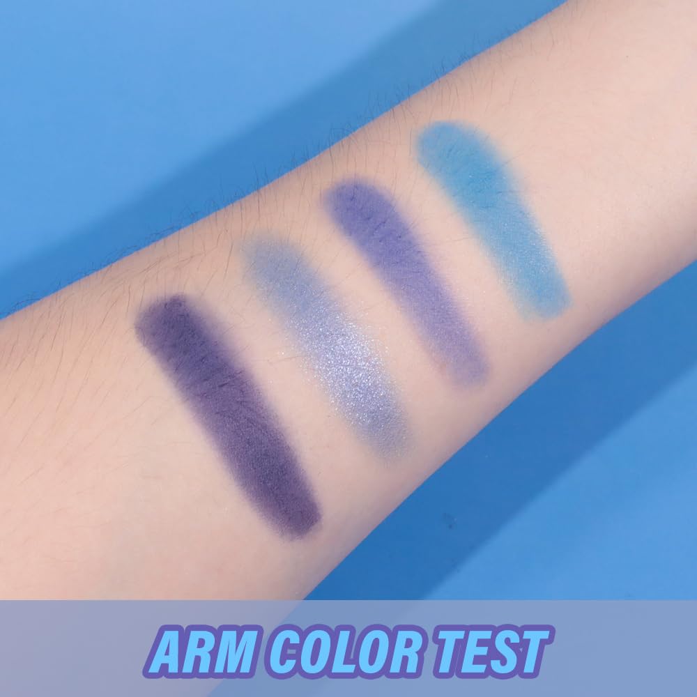 Navy Blue 4Colors Eyeshadow Makeup Palette,Royal Blue Natural Neutral Powde Eye Shadow Palettes for Older Women,Long Lasting Naturing-Looking,Lightweight,Waterproof,Eye Makeup Kit Travel Size,Vegan