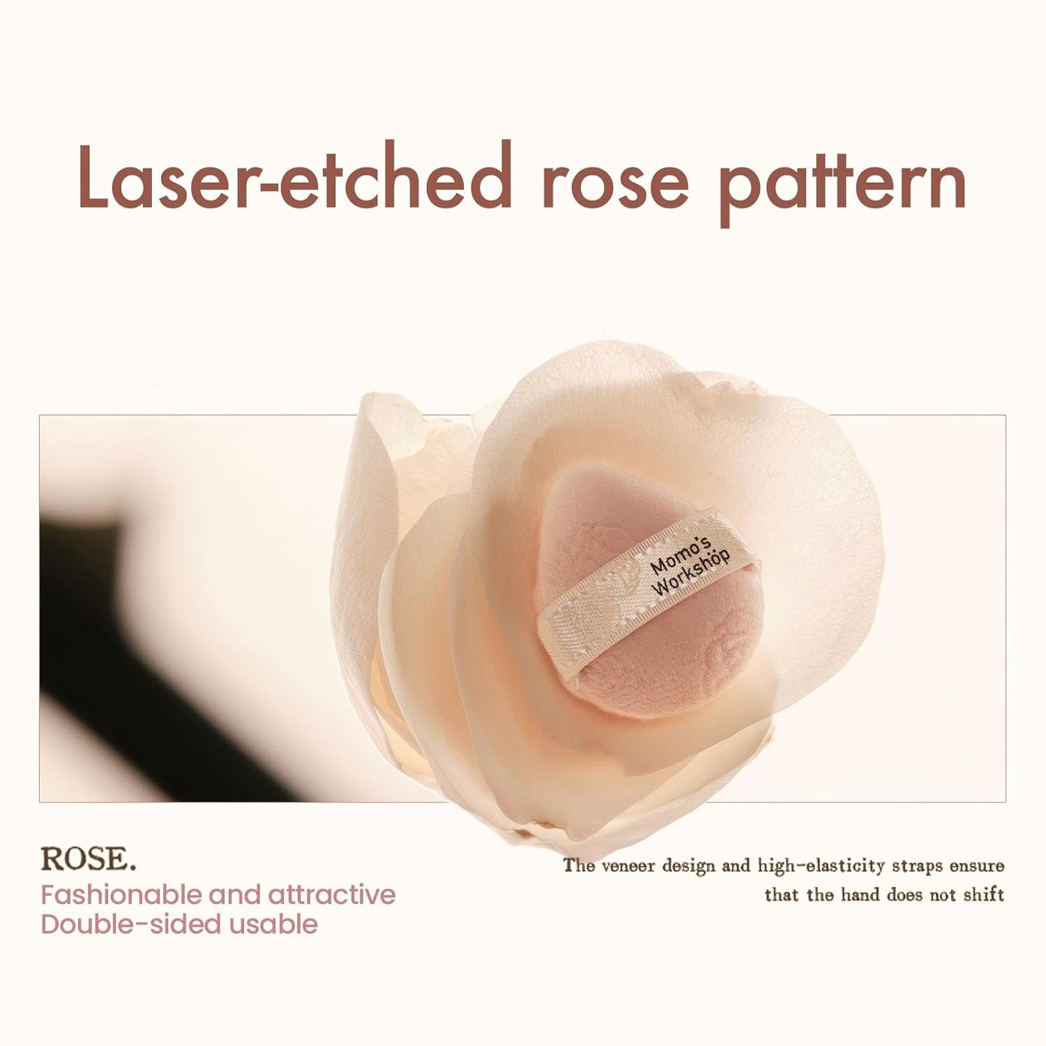 - 【Luxury Laser-Cut Velvet Surface】 Pink velvet powder puff. Features 1mm ultra-soft velvet with rose laser etching—beautiful yet functional. Dual-sided use ensures even powder pickup and release.