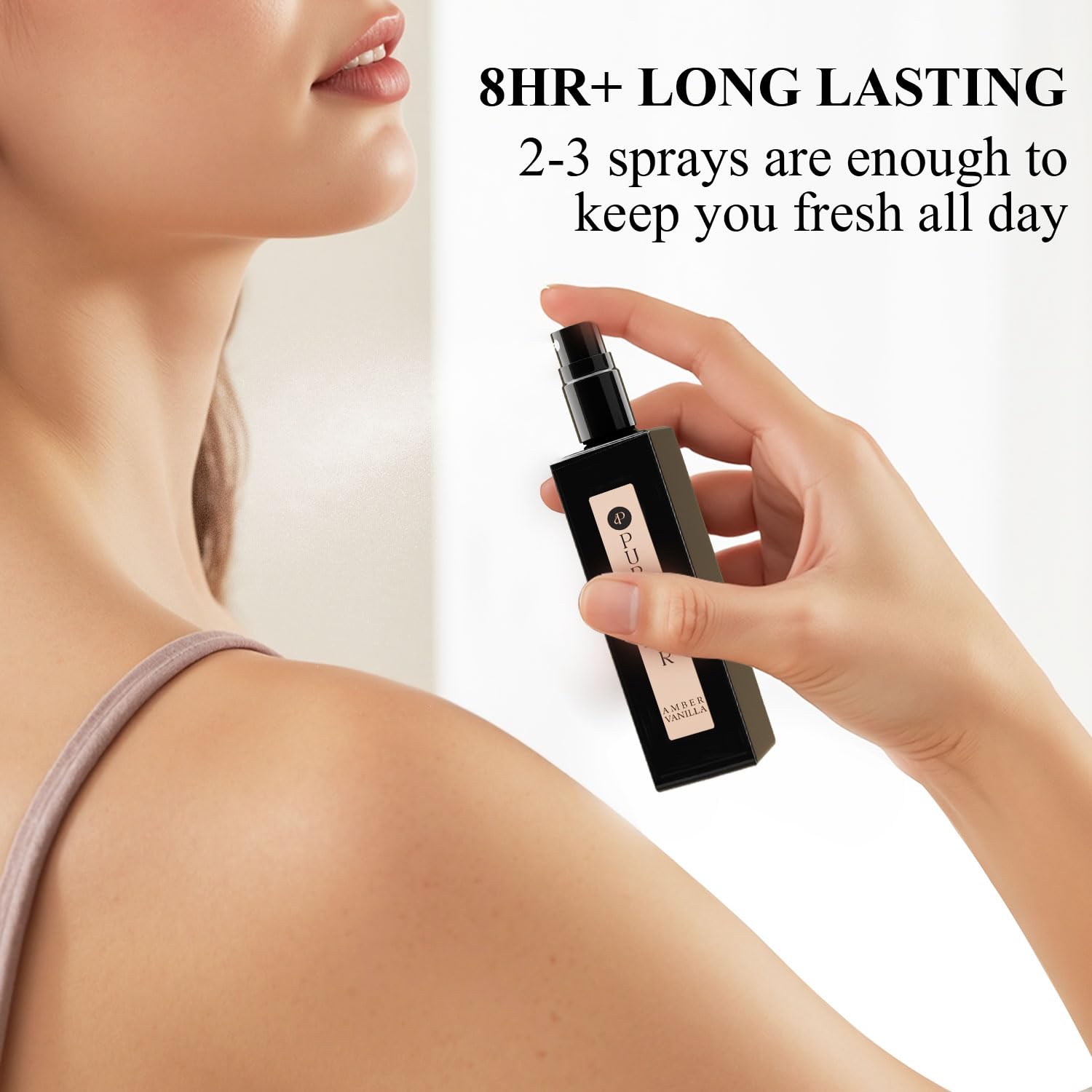 - 【Unleash Midnight Magnetism】PUREAMOR Amber Vanilla perfume for women electrifies with juicy florals, then melts into addictive warmth – your bottled midnight allure. Top: Juicy pear, pink pepper, and orange blossom burst with crisp freshness. Heart: Bold coffee collides with narcotic jasmine, igniting an electrifying floral-spice vortex. Base: Vanilla amber melds into patchouli's earthiness, cedar's smokiness, and cashmere wood's creamy embrace–grounding the scent in opulent warmth.