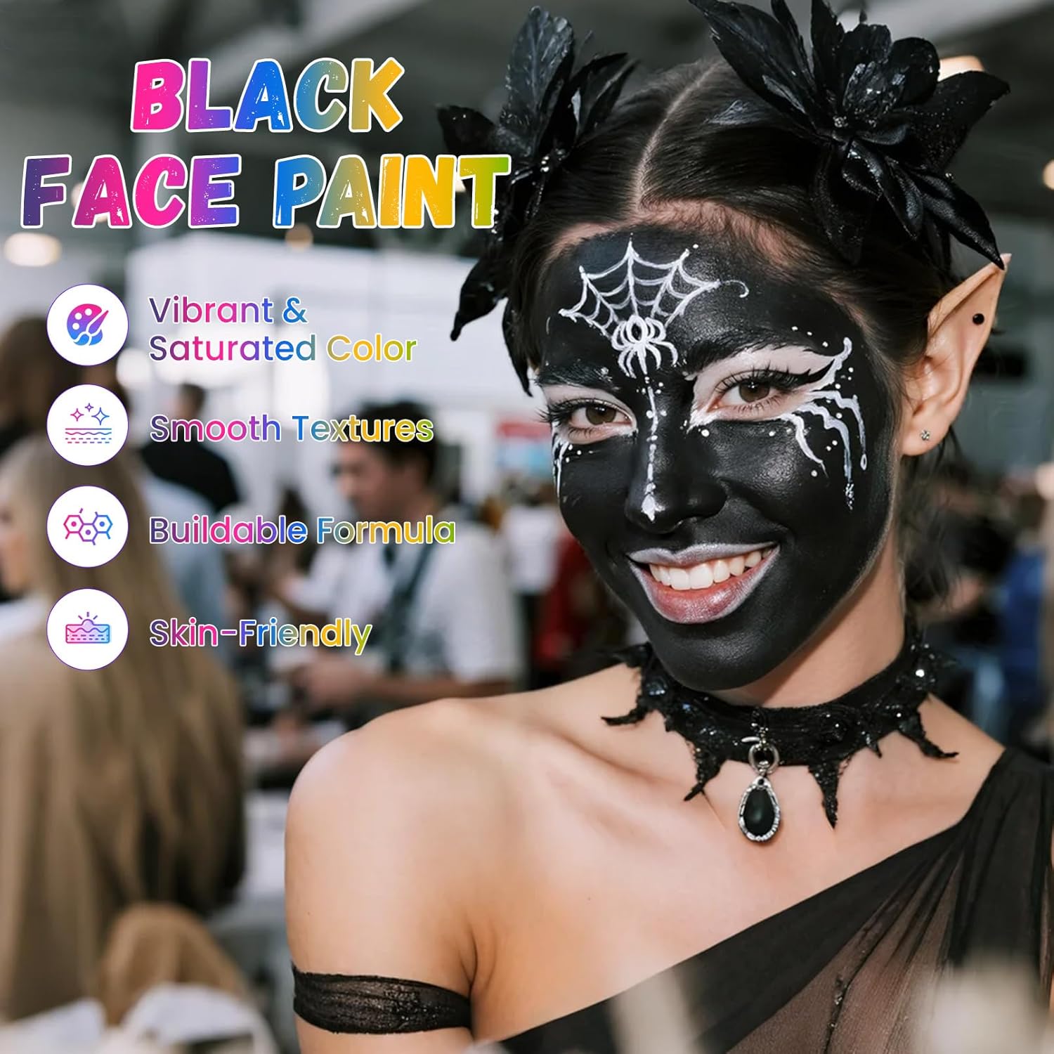 Black Face Paint, Water Based Facepaint, Non Toxic Black Body Paint, High Pigment Face Painting for Halloween, Easter, Costume, Cosplay, Clown Makeup 1.06 Oz.
