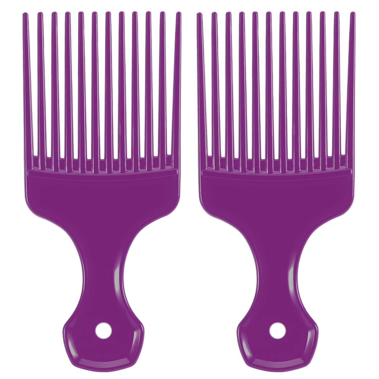 2 Pcs Hair Pick Comb Wide Tooth Lift for Hair Styling Detangling Plastic Afro Comb for Women Men (Purple)