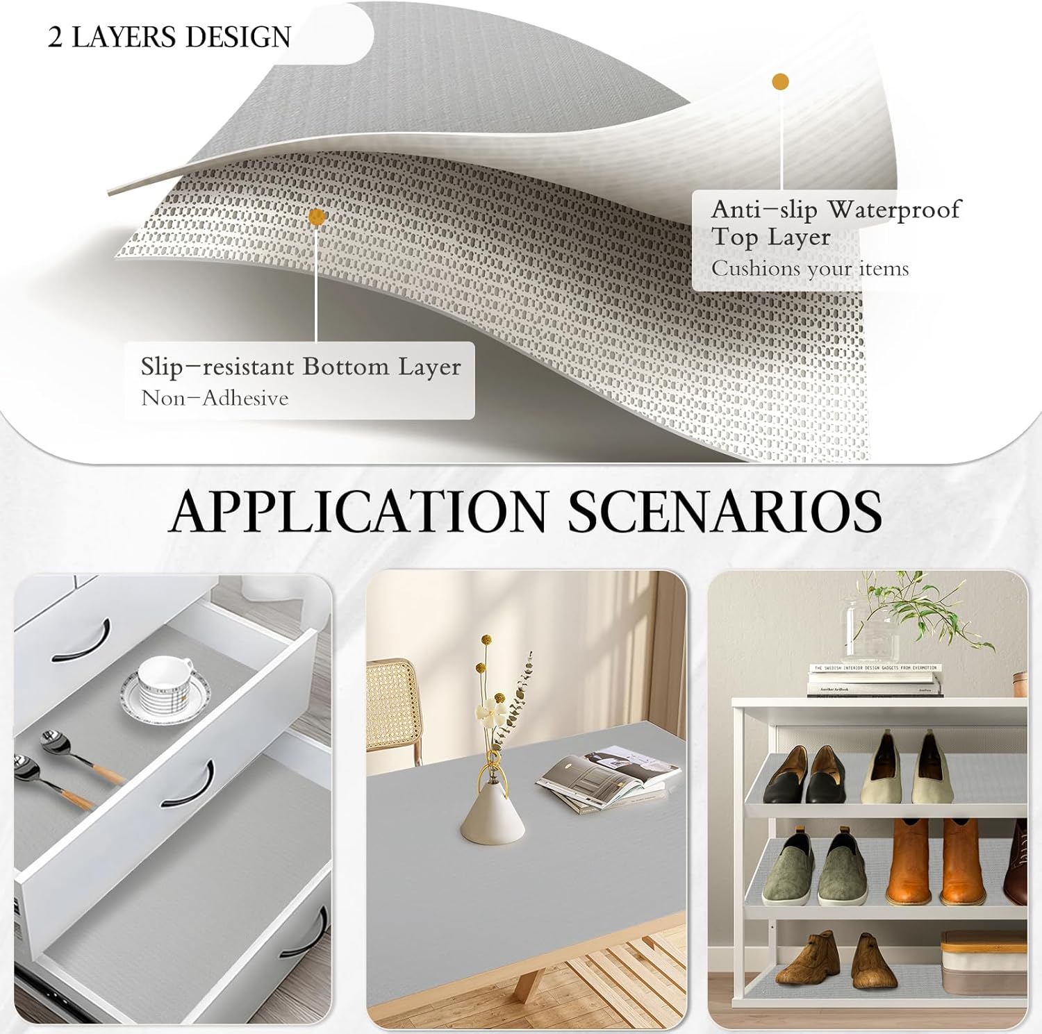 - Easy to Clean Drawer Liner:The gray non-slip drawer liner, easily cleaned with a damp cloth or sponge.This feature makes it ideal for use in areas prone to spills, such as the kitchen or bathroom, ensuring that its pristine beauty remains intact, day after day