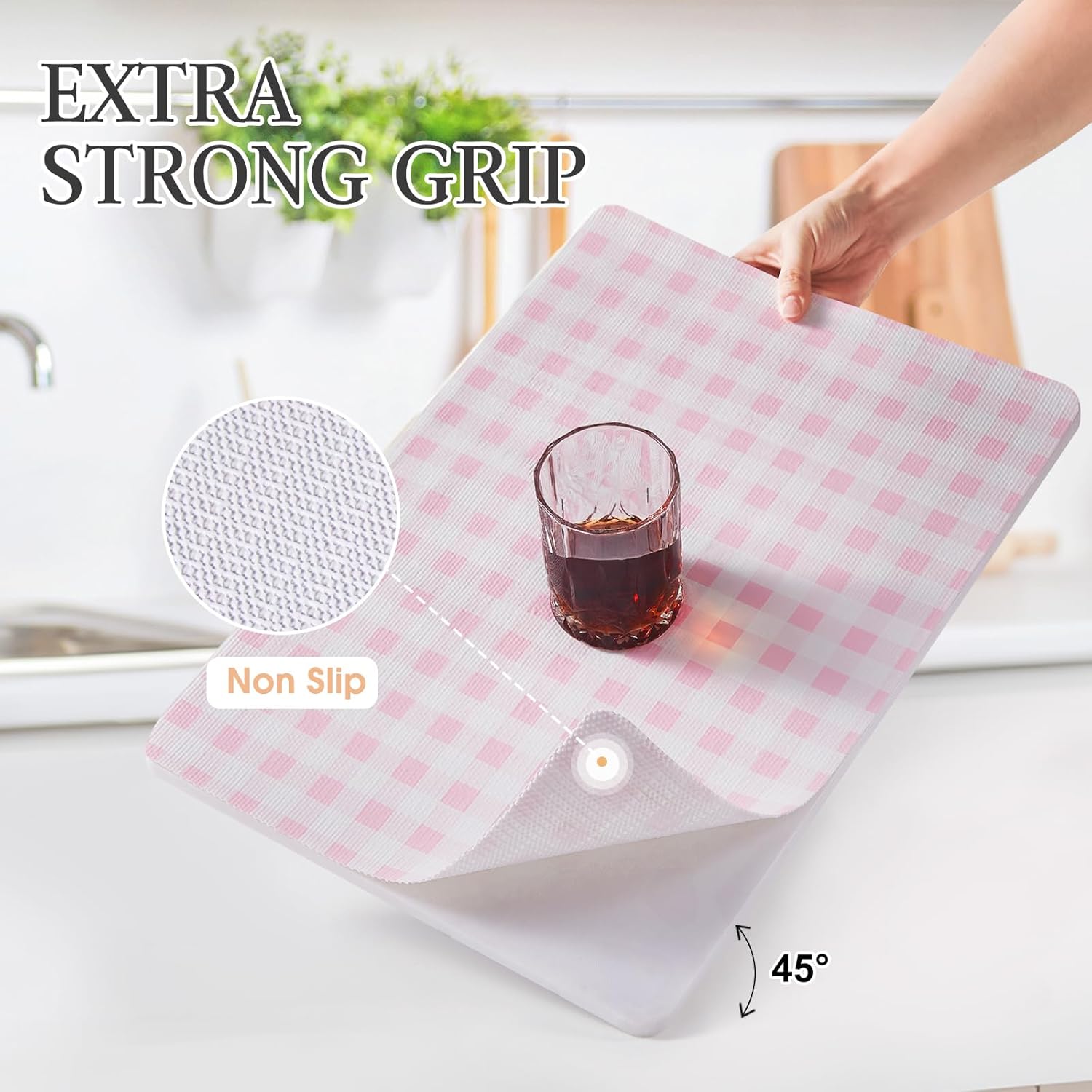 Beautysaid Shelf and Drawer Liner for Kitchen Cabinet, Non Adhesive Non Slip Shelf Paper Waterproof Washable Thickened for Dresser Pantry Shelve Bathroom Protector Liner(Pink Checkered,12 in x 30 FT)