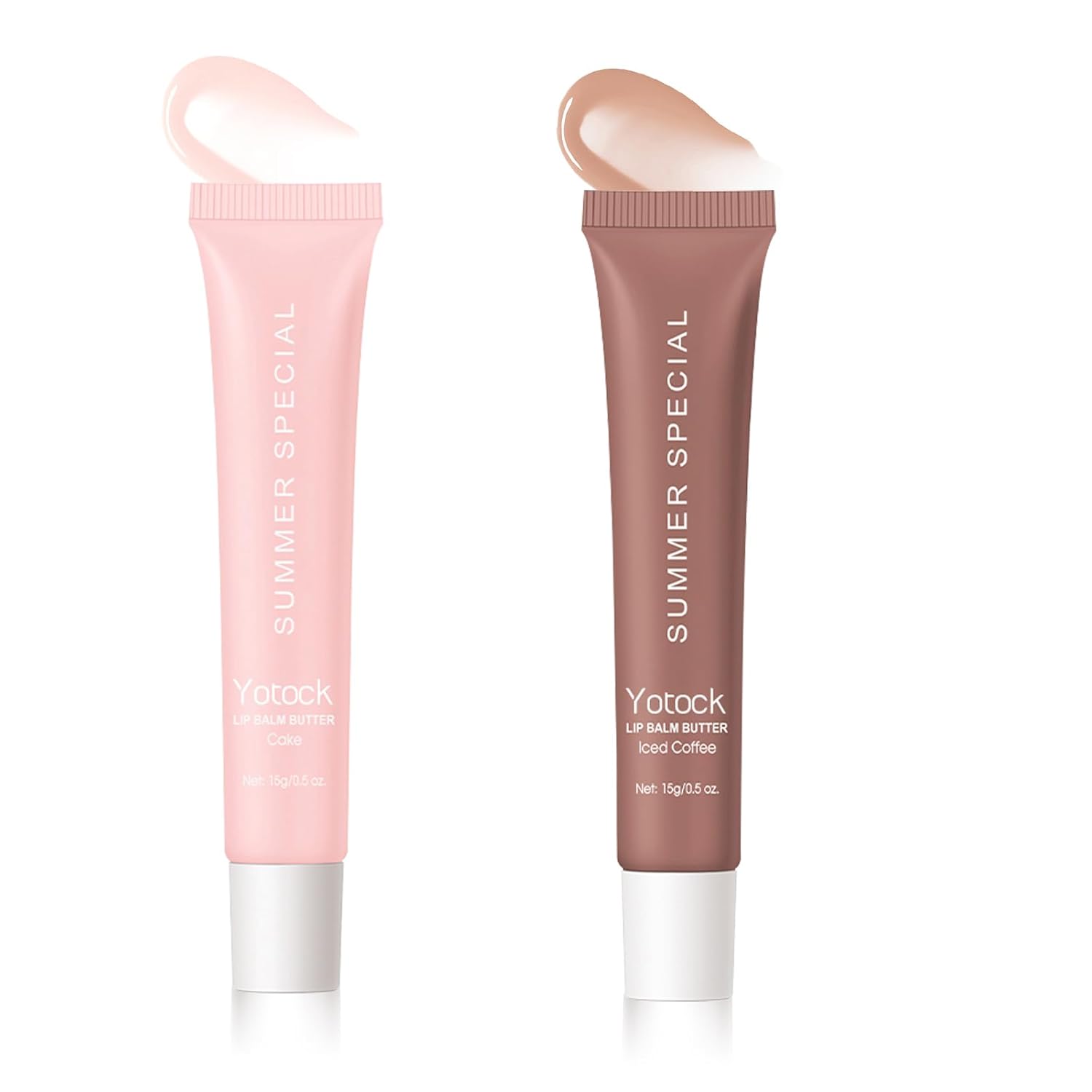 2 PCS Summer Lip Glossy Butter Balm Set, Tinted Lip Balm Long-Lasting Hydrating and Moisturizer, Glitter Lip Glossy Soften Dry Lips and Lip Care, Christmas, Birthdays Gifts for Women and Teen Girls