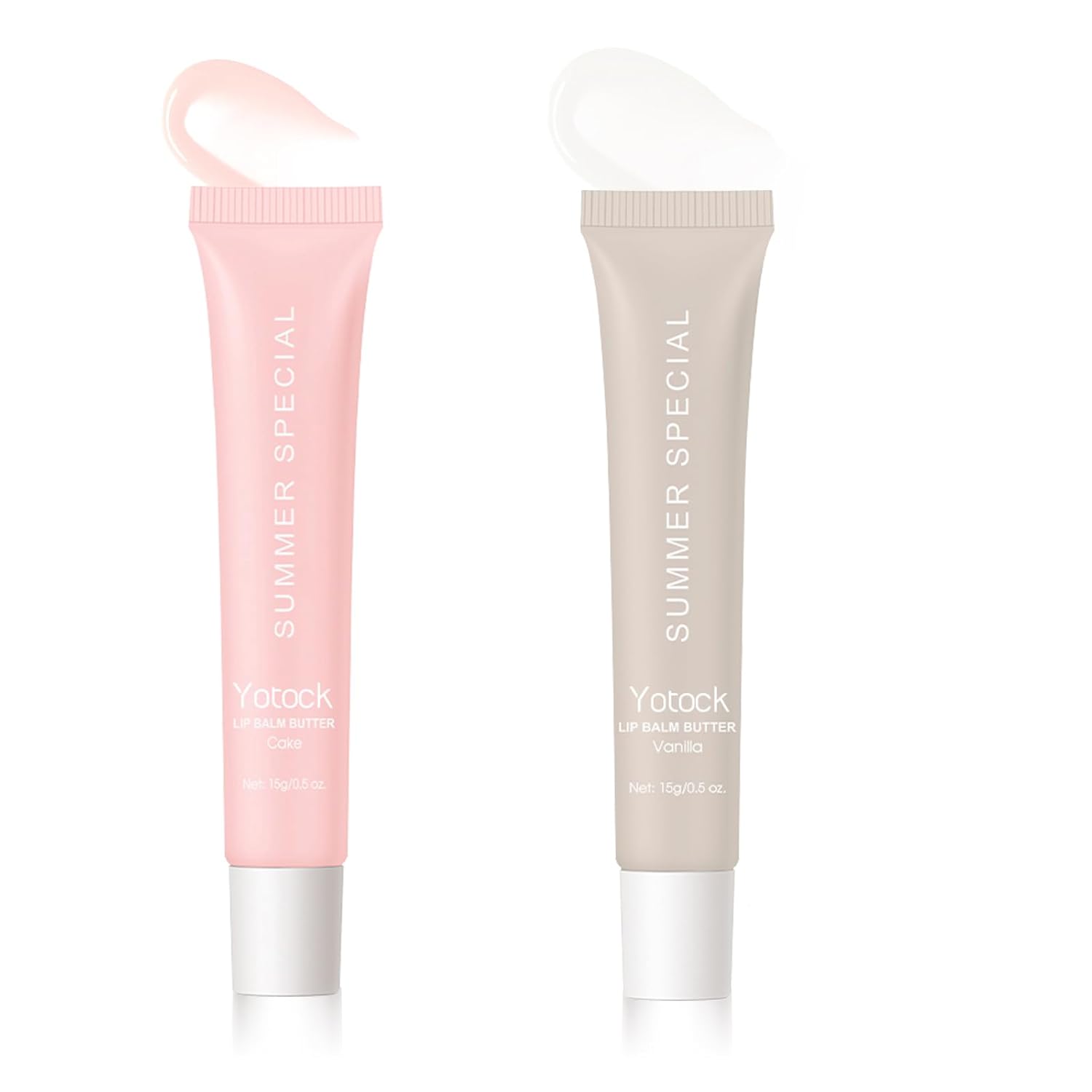 2 PCS Summer Lip Glossy Butter Balm Set, Tinted Lip Balm Long-Lasting Hydrating and Moisturizer, Glitter Lip Glossy Soften Dry Lips and Lip Care, Christmas, Birthdays Gifts for Women and Teen Girls