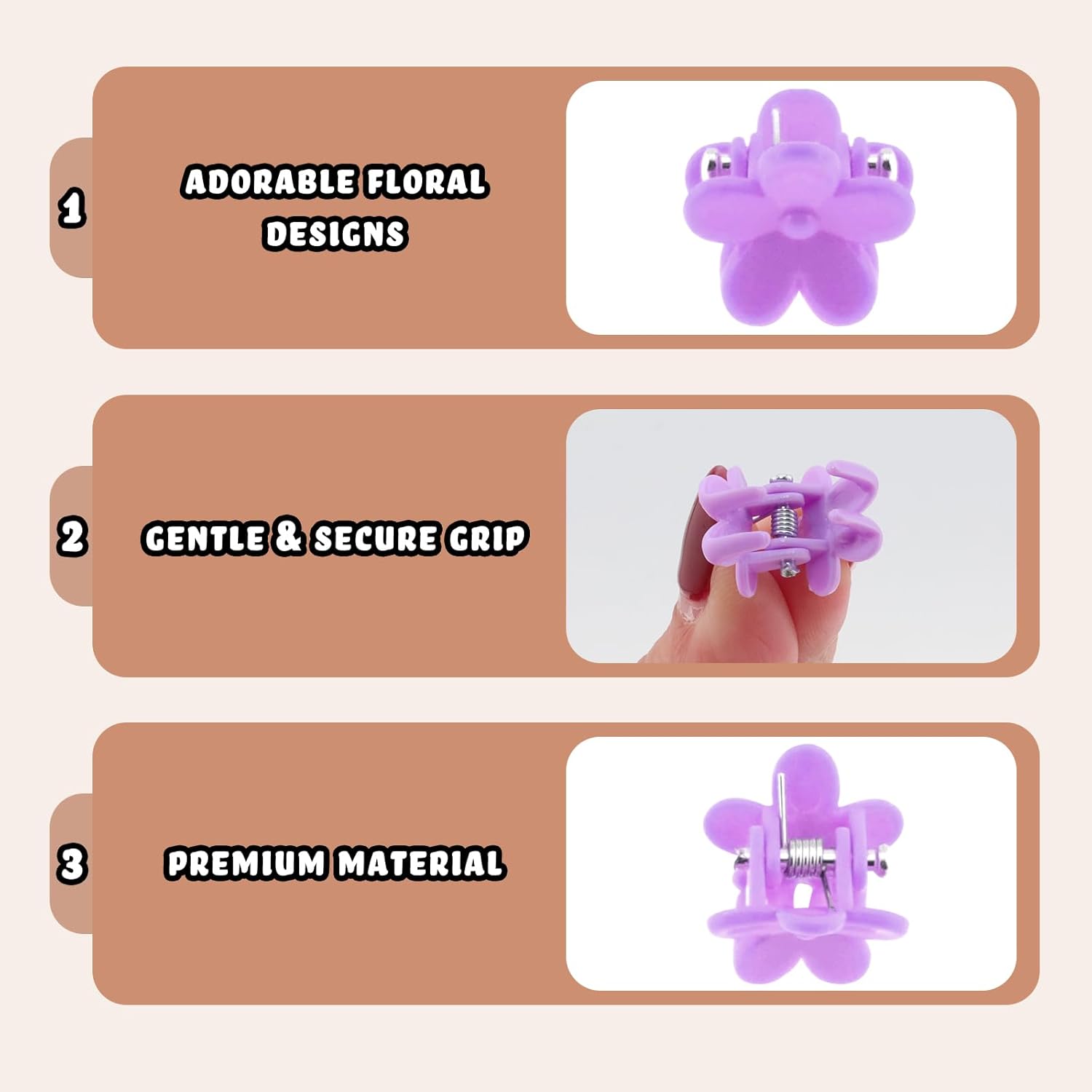 - 100-Pack Mini Flower Claw Clips – Bulk set of delicate floral hair claws (1-1.5") designed for fine hair, bangs, baby girls, toddlers, and women seeking subtle styling.