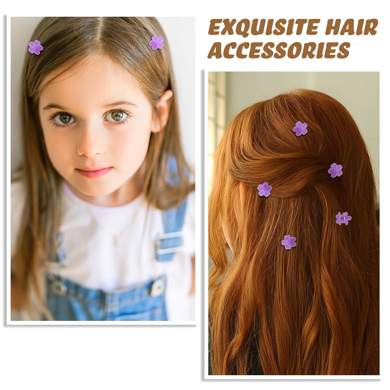 100 Pack Mini Flower Hair Claw Clips Small Flower Hair Clip Accessories for Fine Hair Bangs Toddler Girls and Women (Purple)