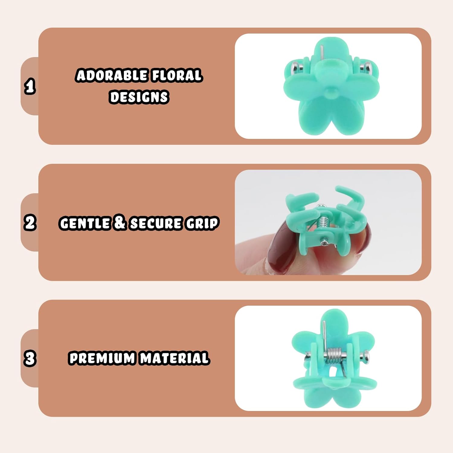 - 100-Pack Mini Flower Claw Clips – Bulk set of delicate floral hair claws (1-1.5") designed for fine hair, bangs, baby girls, toddlers, and women seeking subtle styling.