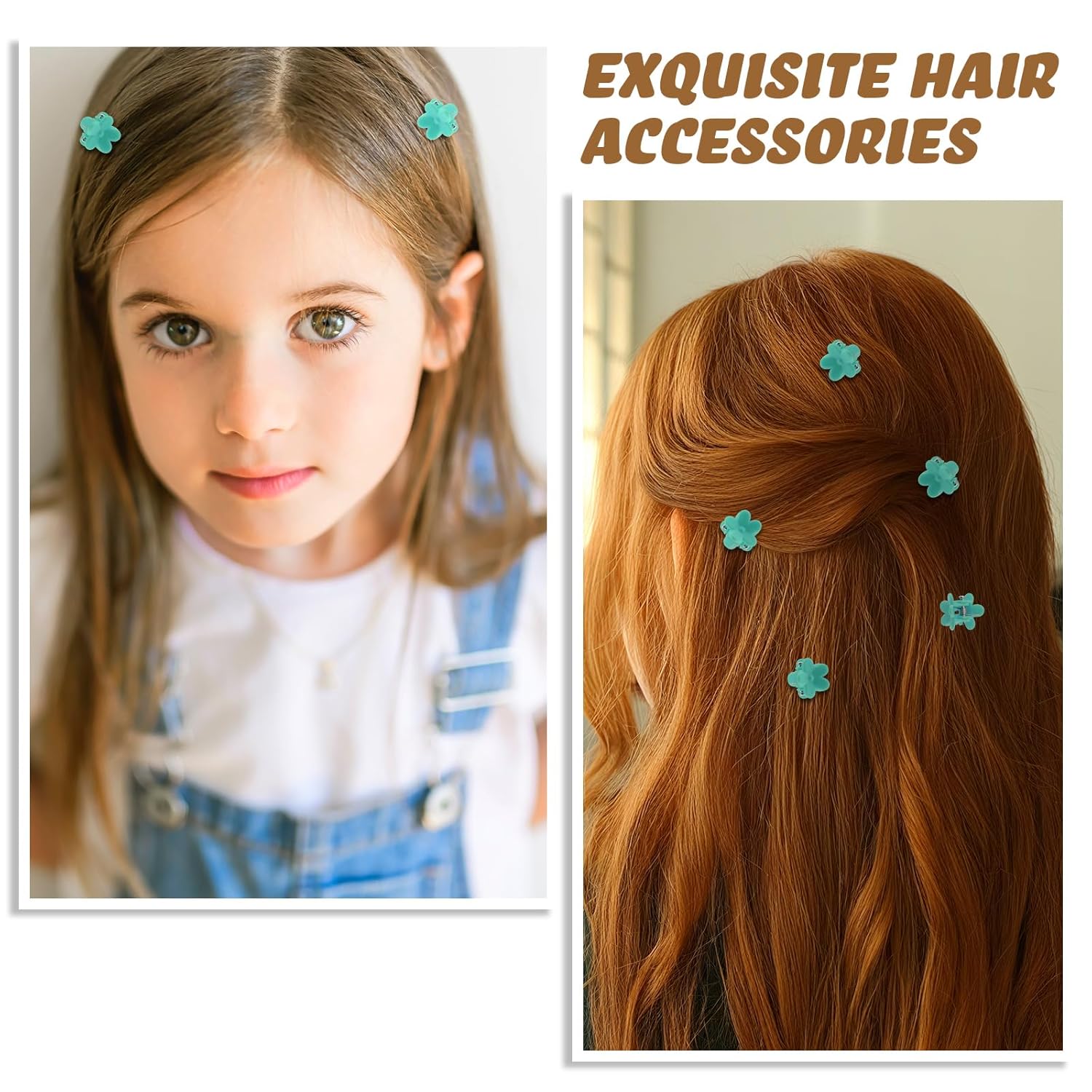 100 Pack Mini Flower Hair Claw Clips Small Flower Hair Clip Accessories for Fine Hair Bangs Toddler Girls and Women (Greenish-blue)